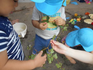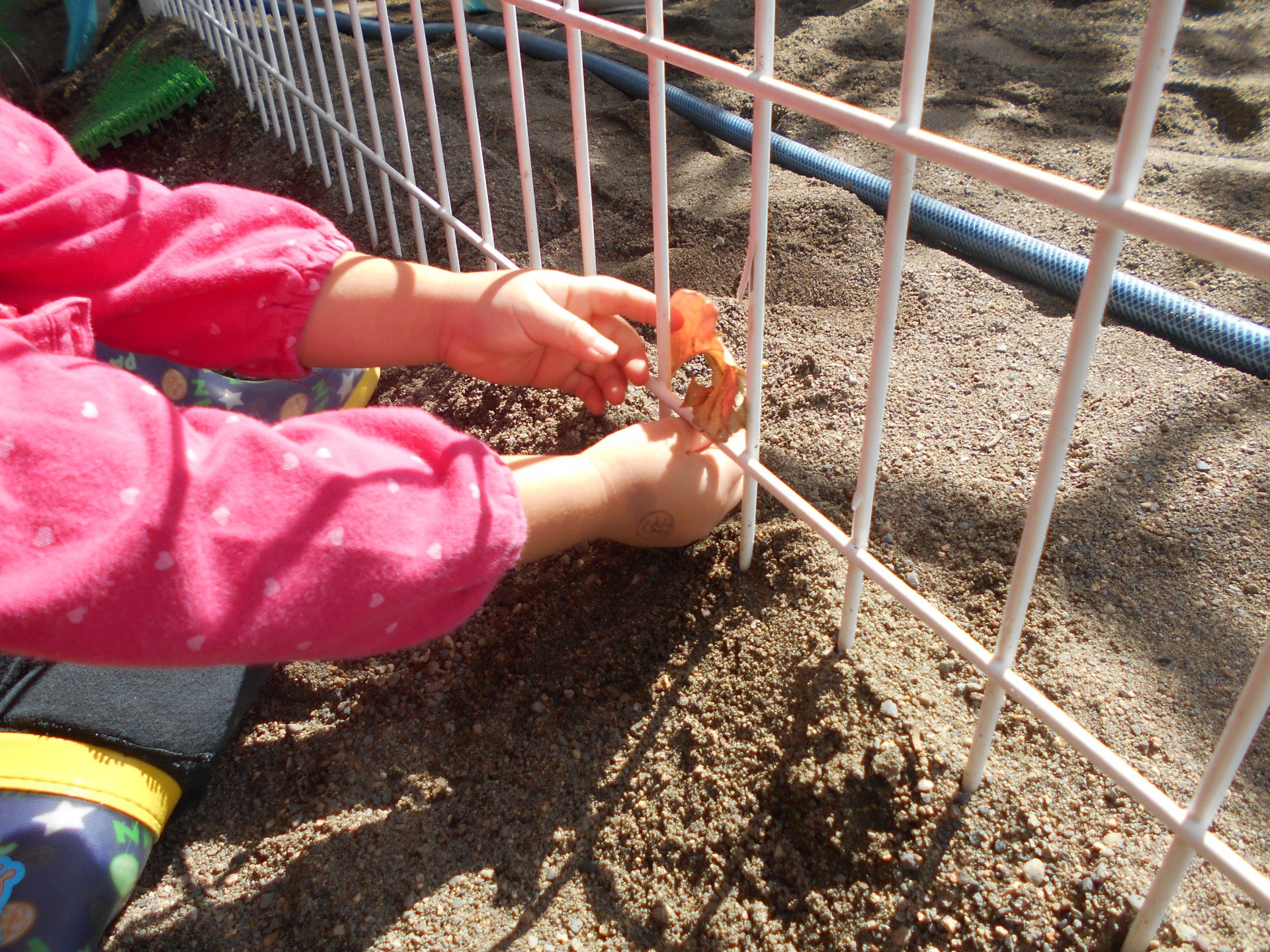 その後、みんなでフェンスの外側へ行って葉っぱ拾いを楽しみました。