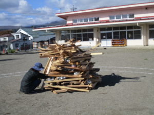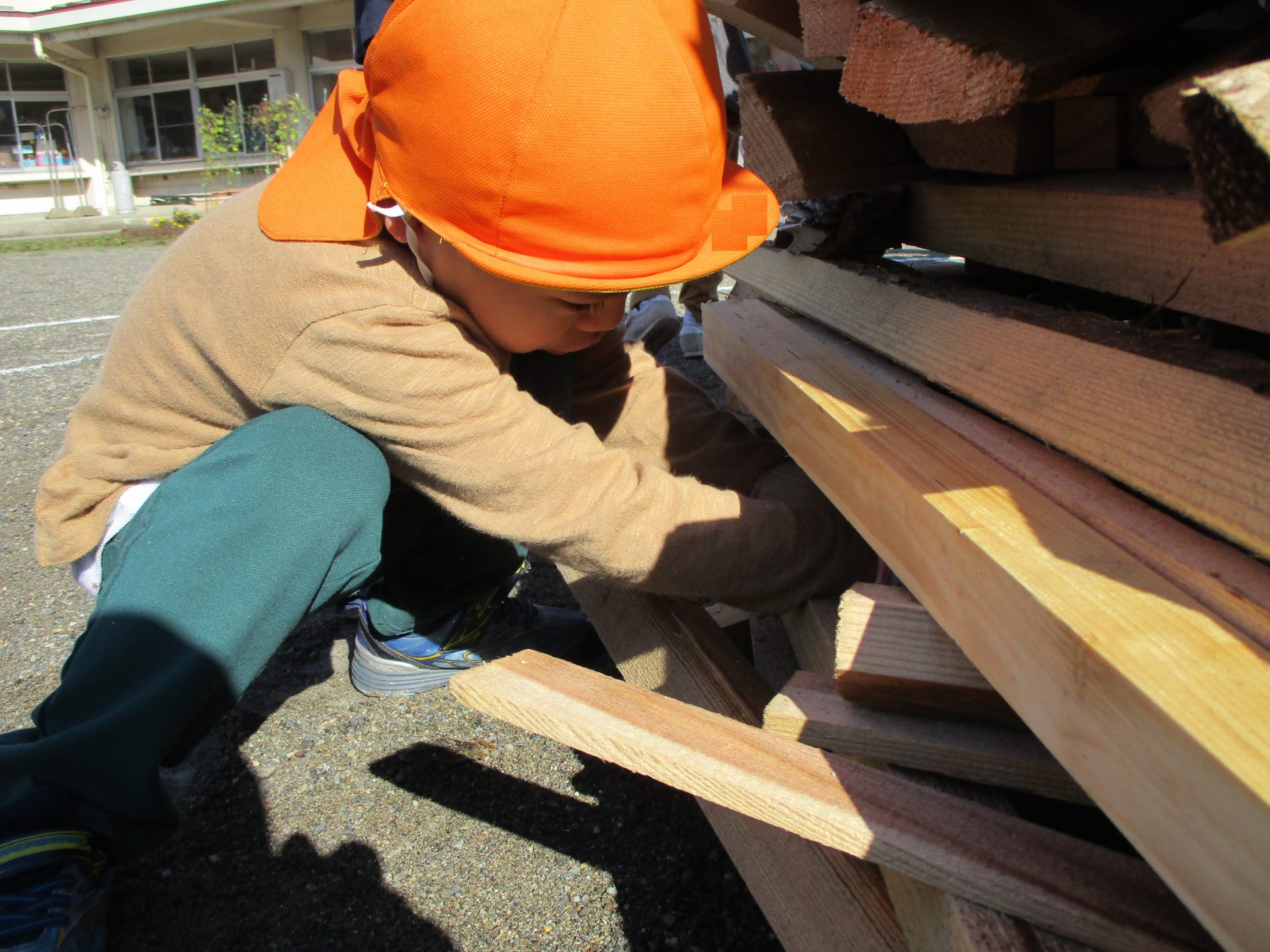 さて、当日。前日に「明日は薪運びの準備があるよ」と話をすると全員早く登園し準備に取りかかっていました。中には家から自分の軍手を持ってくる子も!!気持ちが伝わってきますね!