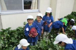 年長組が大切に育てたさつまいもを収穫 しました。