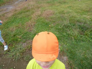 野原で走って、体にくっつく草の実をつけたり投げたりと