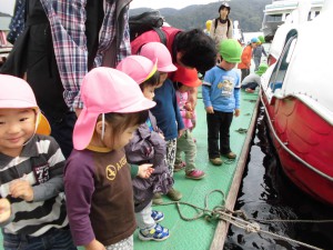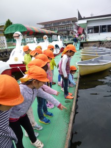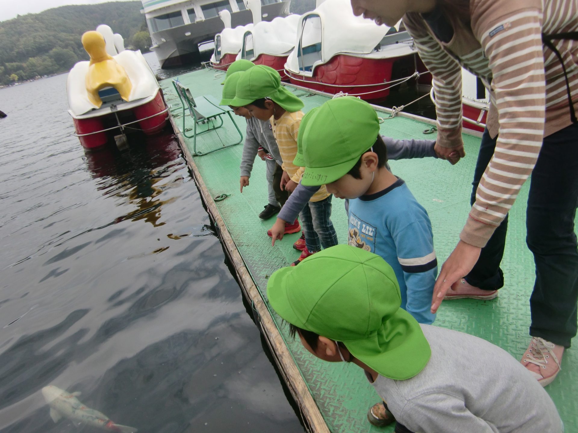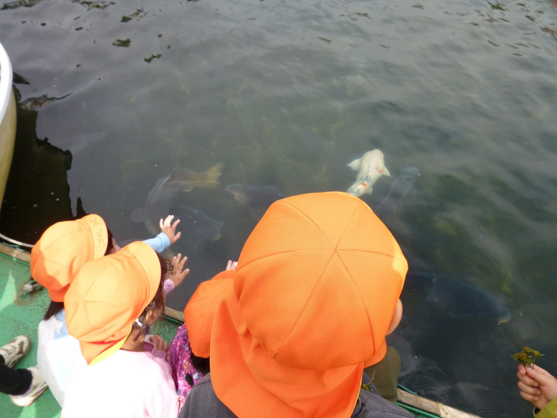 子ども達は、自分達くらいある鯉に餌をあげたり、見たりして楽しんでいました。