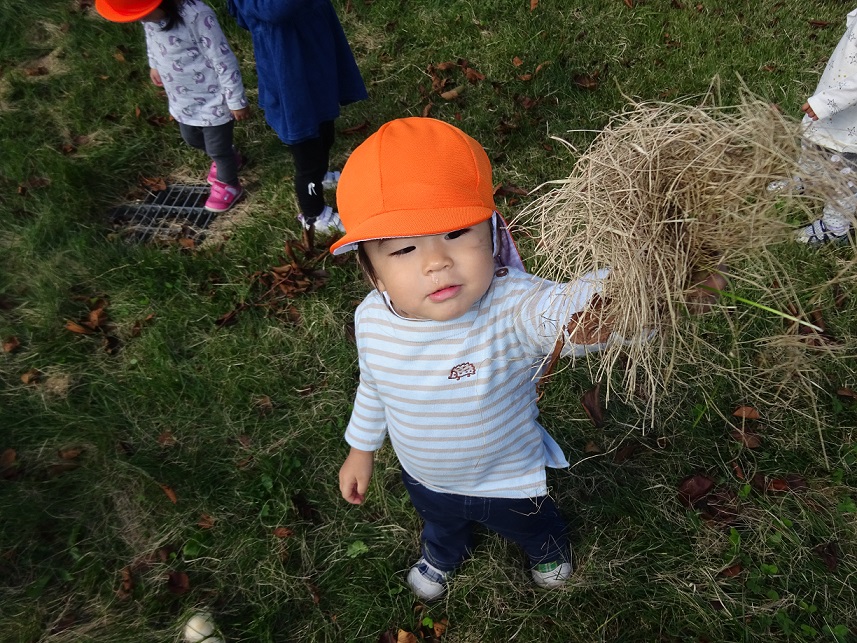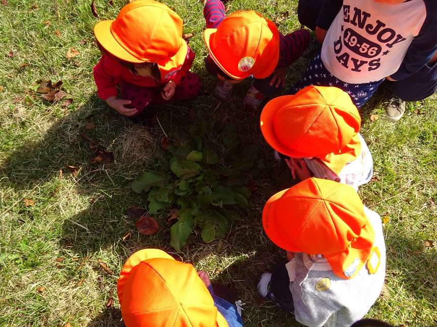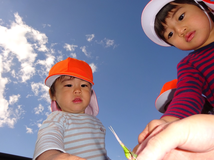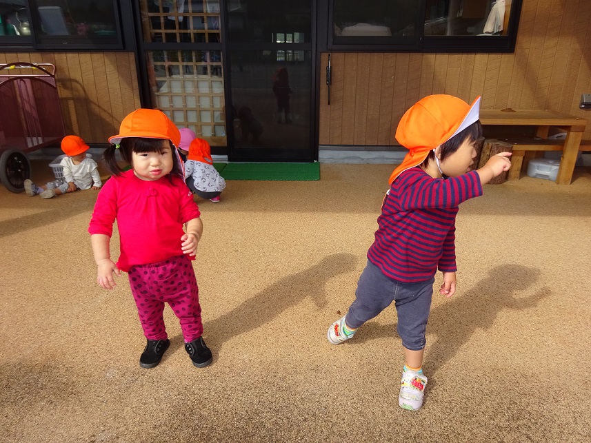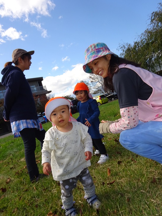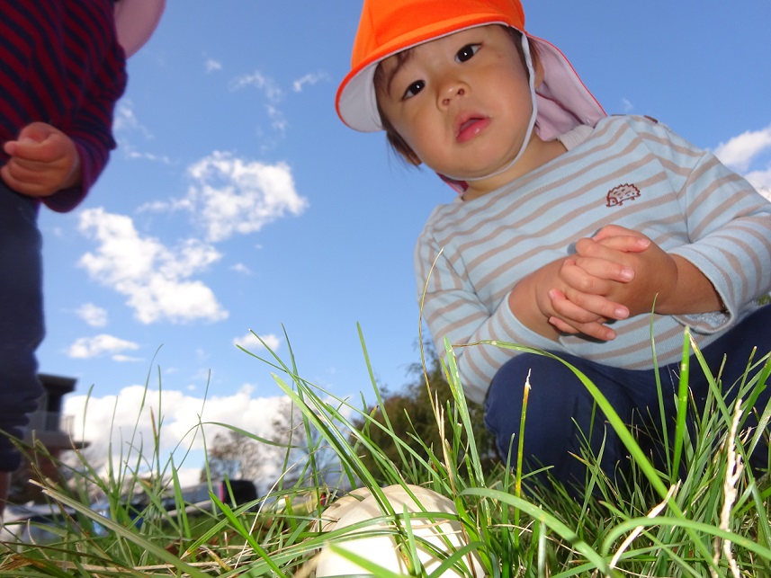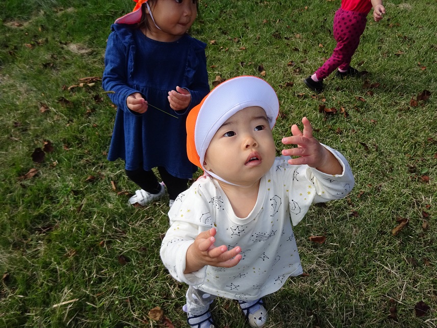 散歩では1歳児でも色々な発見があります。その発見の驚きやうれしさなどを子どもたちと共有していきたいと思います。