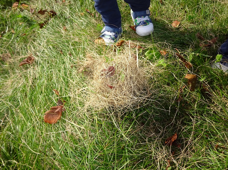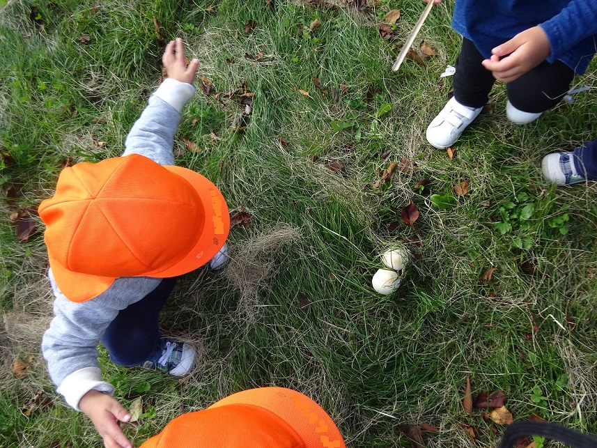 見つけたのは白くて丸いボールのようなものです。(多分オニフスベのまだ大きくならないものでしょうか)