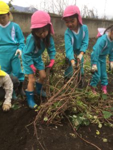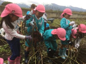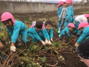 ツルが長くなること、色々な形のお芋が出来ること、ツルも食べられること、様々な発見が出来たと思う。