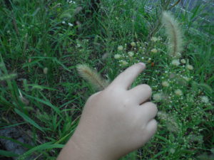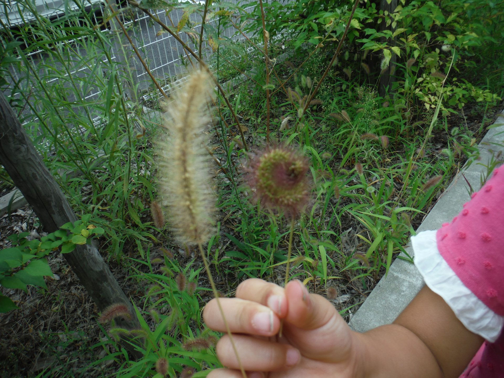 「ねこじゃらしの色がちがうよ!!こっちはみどりでこっちはピンク色してるー!」