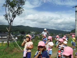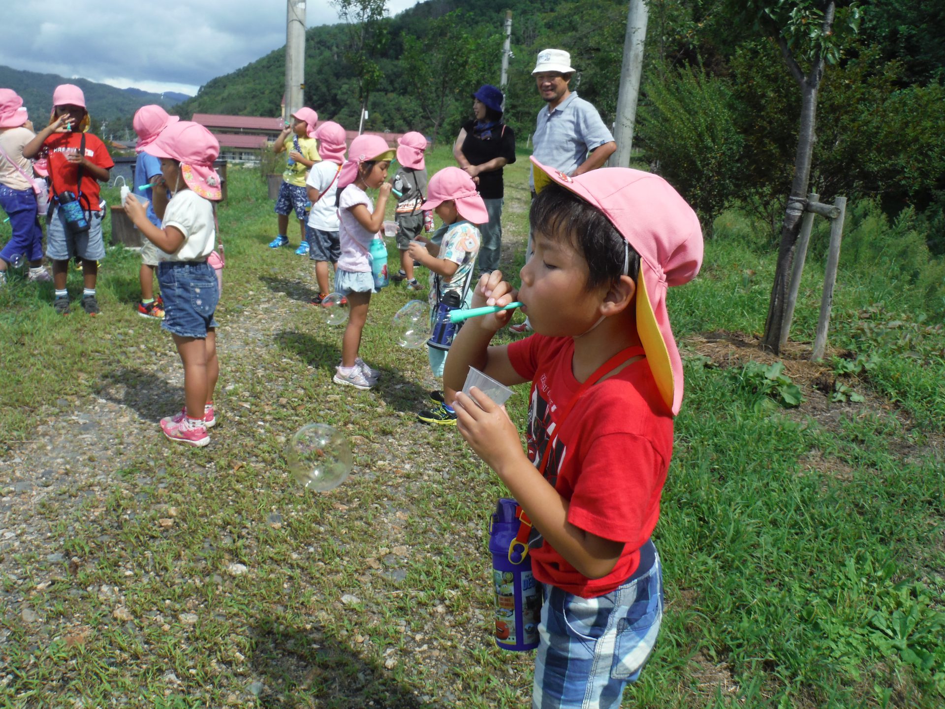 キラキラ光るシャボン玉を「ほたるみたい」と発想する子が多かったのは、明科っ子だなあとまた思いました。明科では家の近くでまだ蛍が見えるようです。