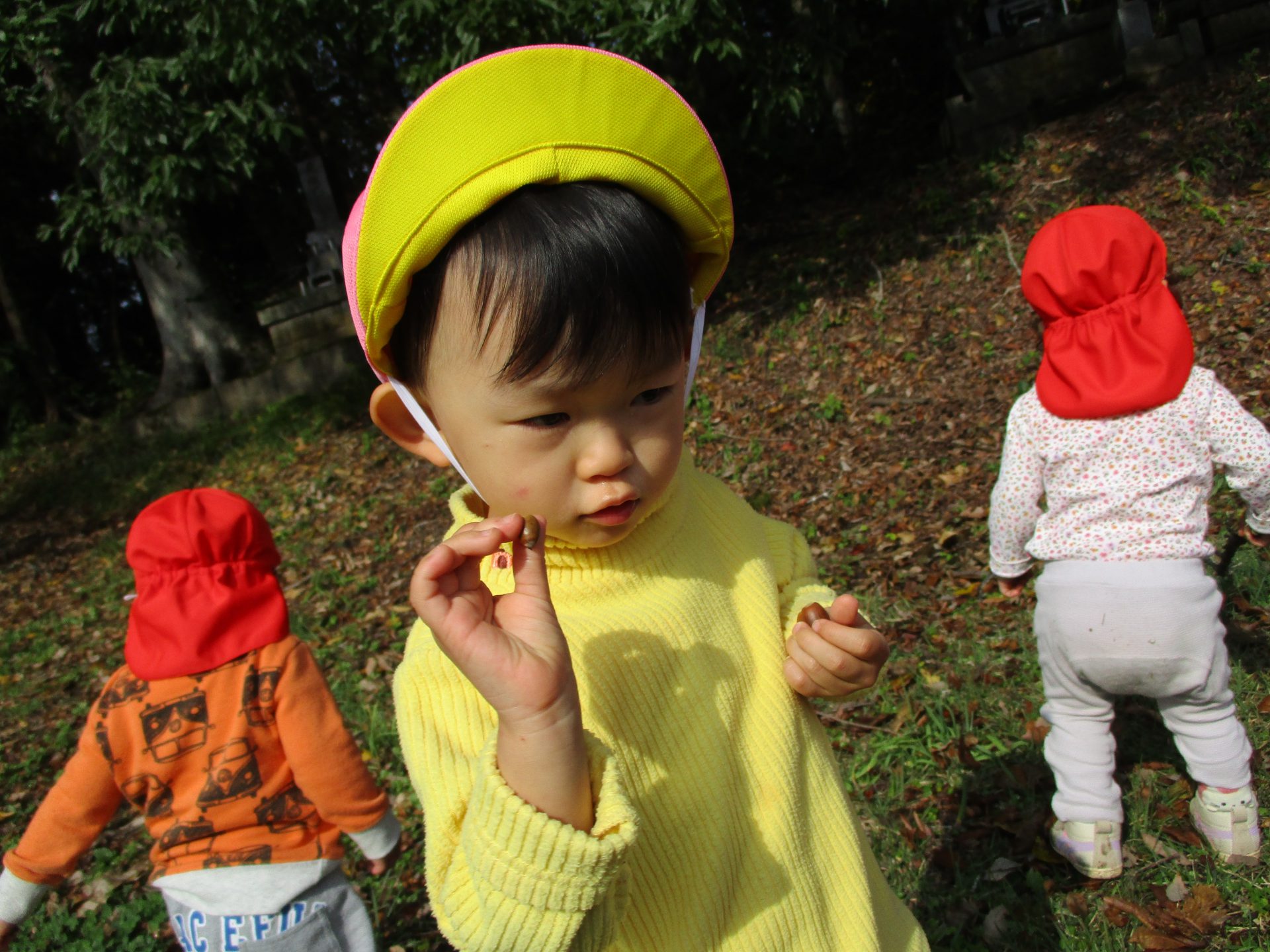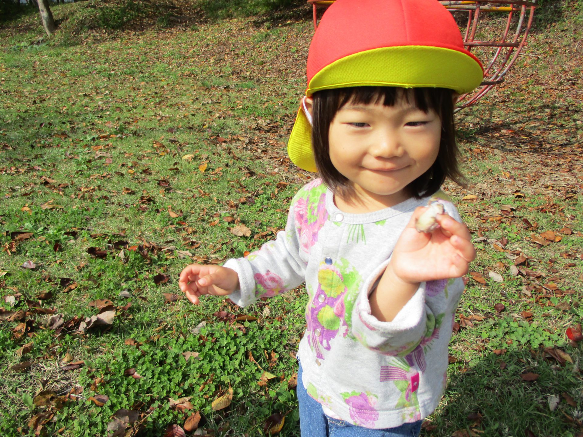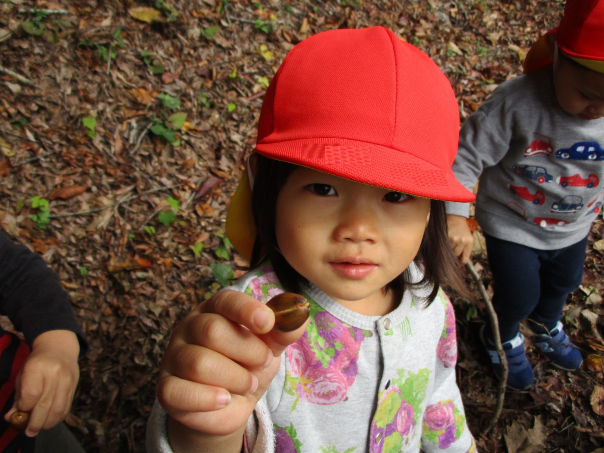 こちらの女の子は「ちいさいどんぐりあった」と”小さい声”で教えてくれました。