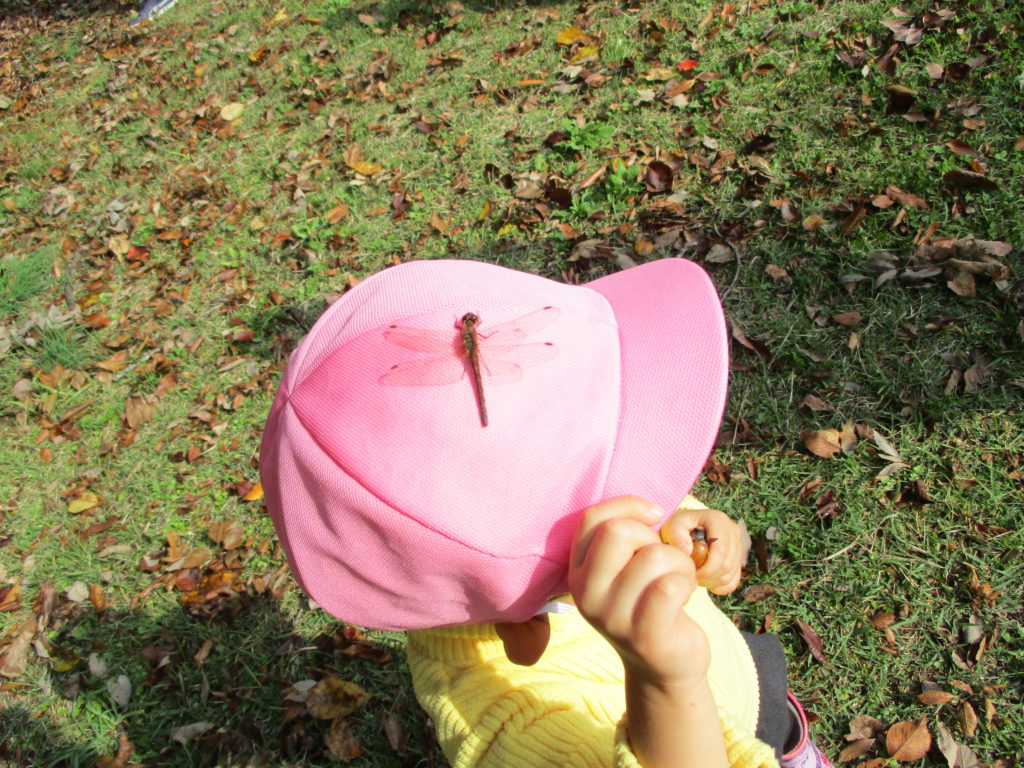 帽子にトンボがとまったお友だち。