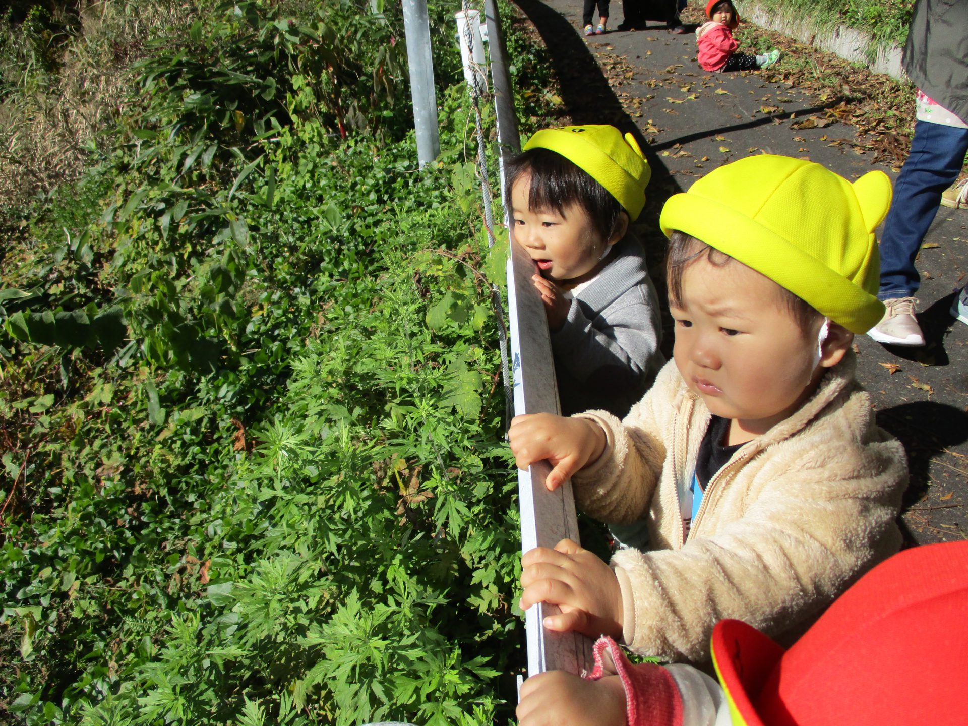 途中で幼児組のお友だちに会いました。