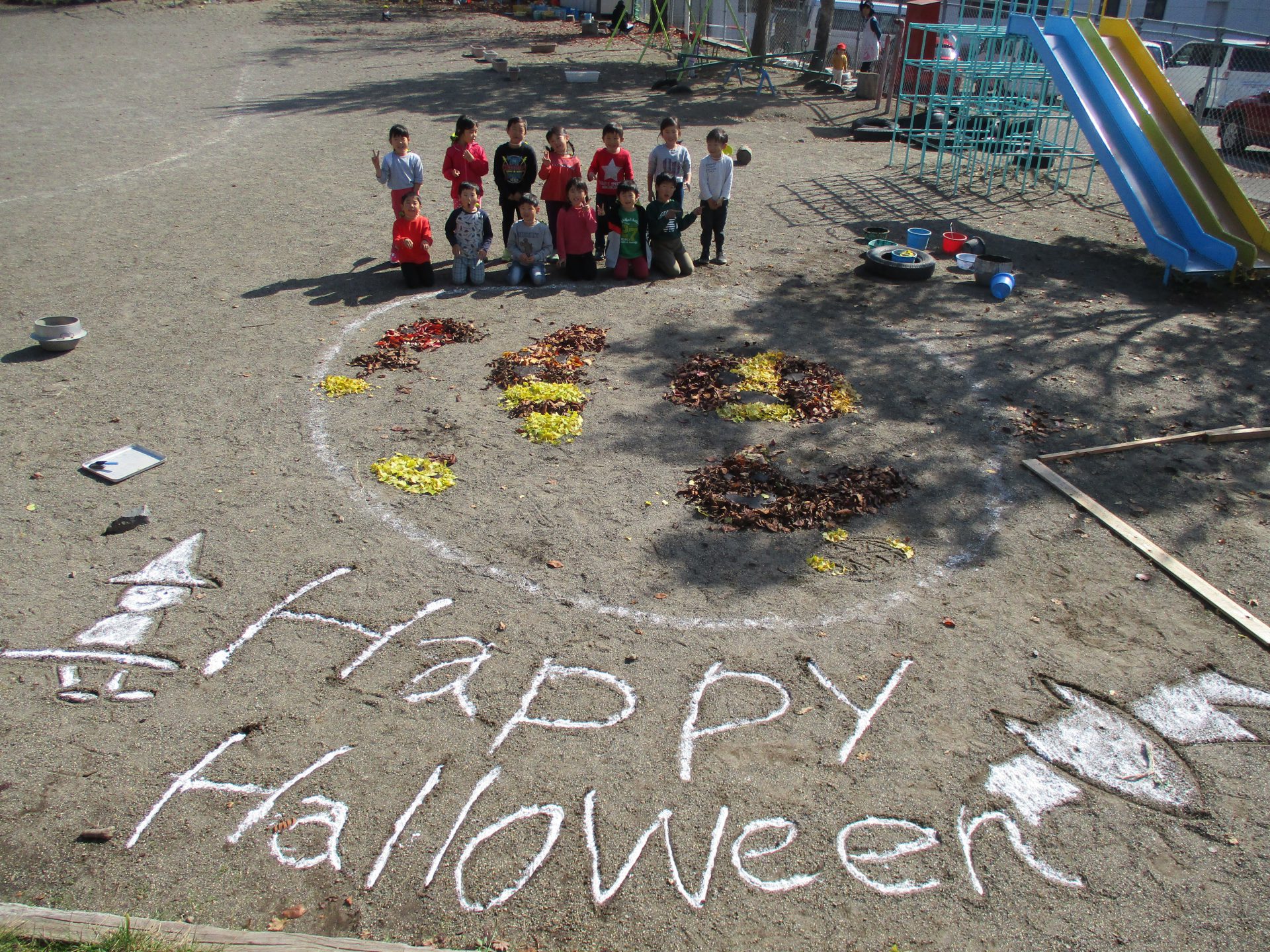 ハロウィンの時期には地域の方のご好意で落ち葉を使っておばけを作っていただき当日の朝の登園のときはおばけが子ども達をお出迎えしてくれていました。