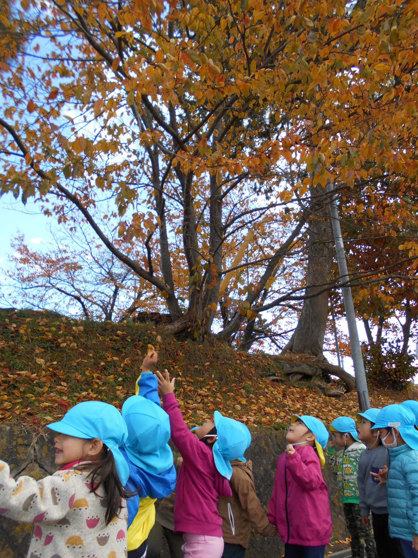 秋の心地よい気候に誘われてお散歩に出かけることが増えた子ども達。「今日どこ行く?」「こっちに行こう!」「あっちにも道あるよ」という声もあり、小さな冒険者になりきって楽しんでいます。