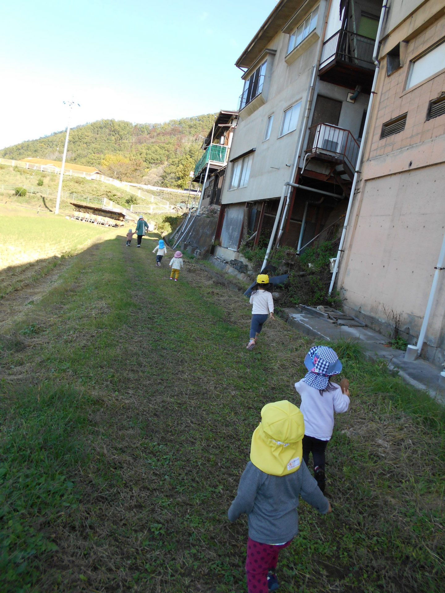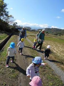今日のお散歩は、子どもたちの心の赴くまま歩いてみました。