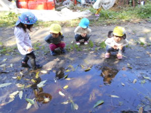 あ~、水たまりの中に、お顔が見える~!「うふふふ・・・」