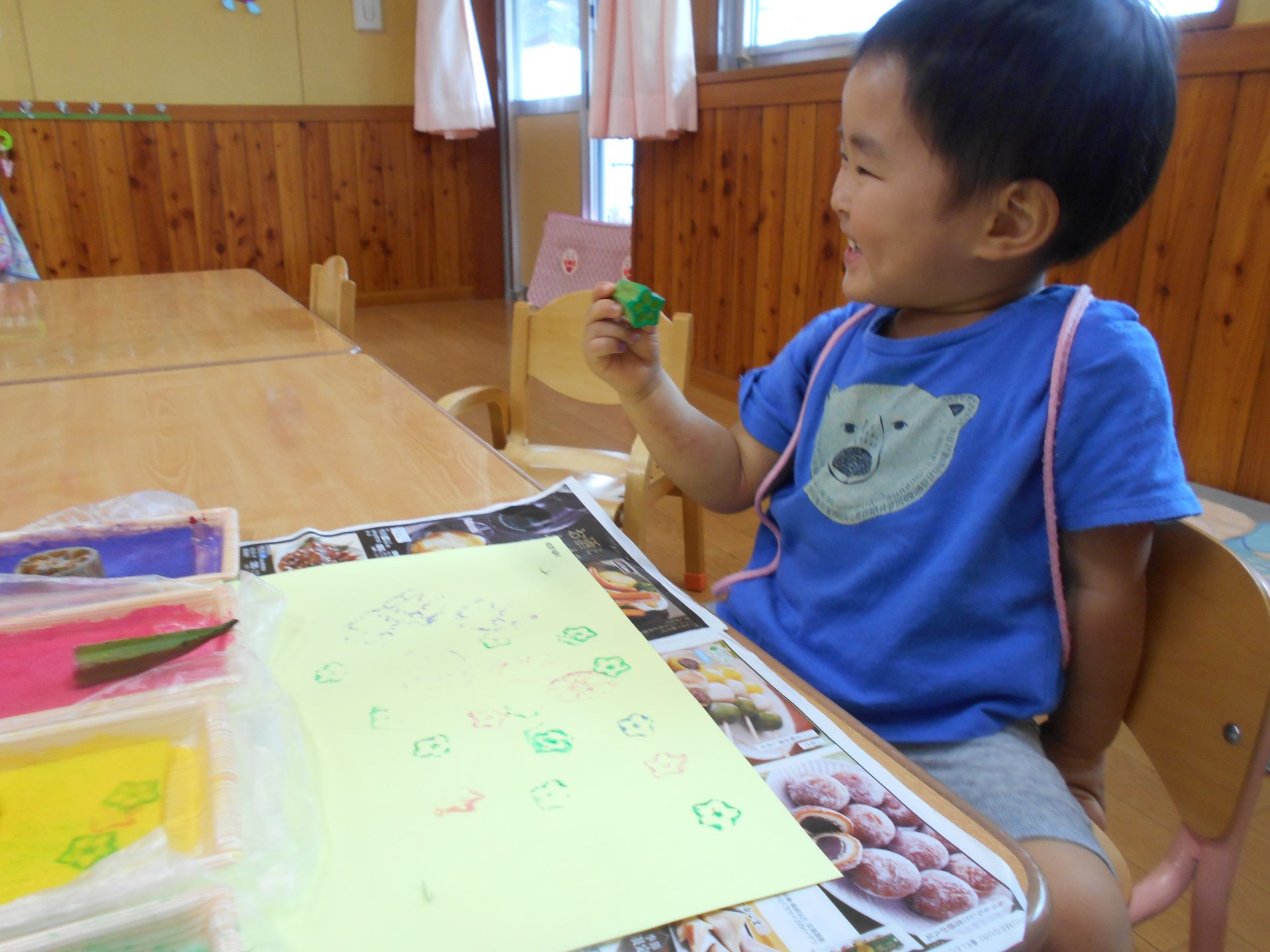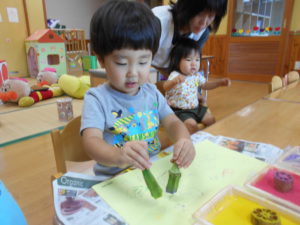 うさぎぐみさん(3歳児)さんの野菜スタンプがとっても素敵で、やってみたくなっちゃった!