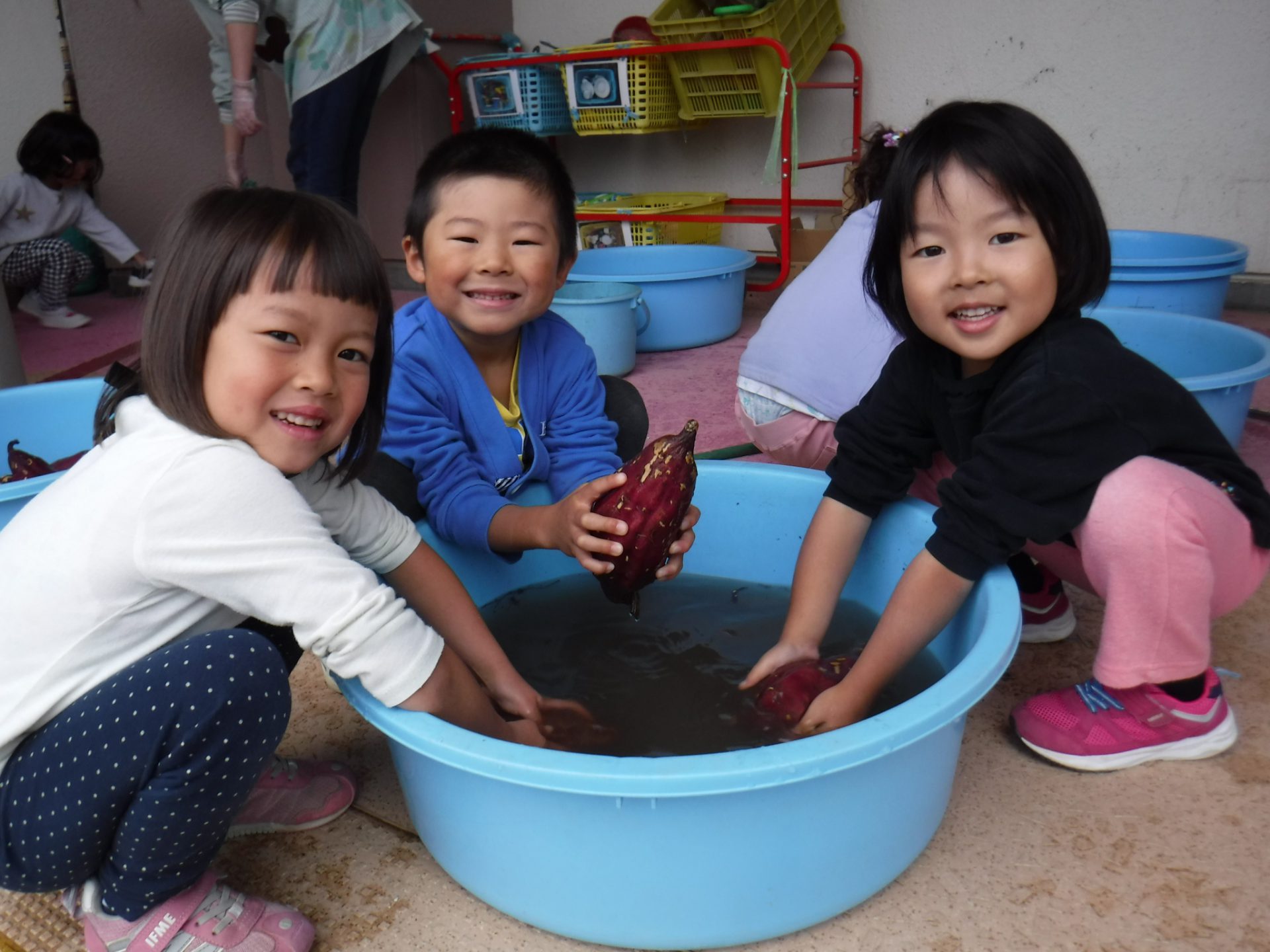 焼きいも会前日には一つひとつ丁寧にさつまいもを洗いました。