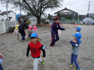 焼き上がりを待つ間、お兄さんお姉さんと鬼ごっこをしたり…一緒に遊んで楽しく過ごしました。