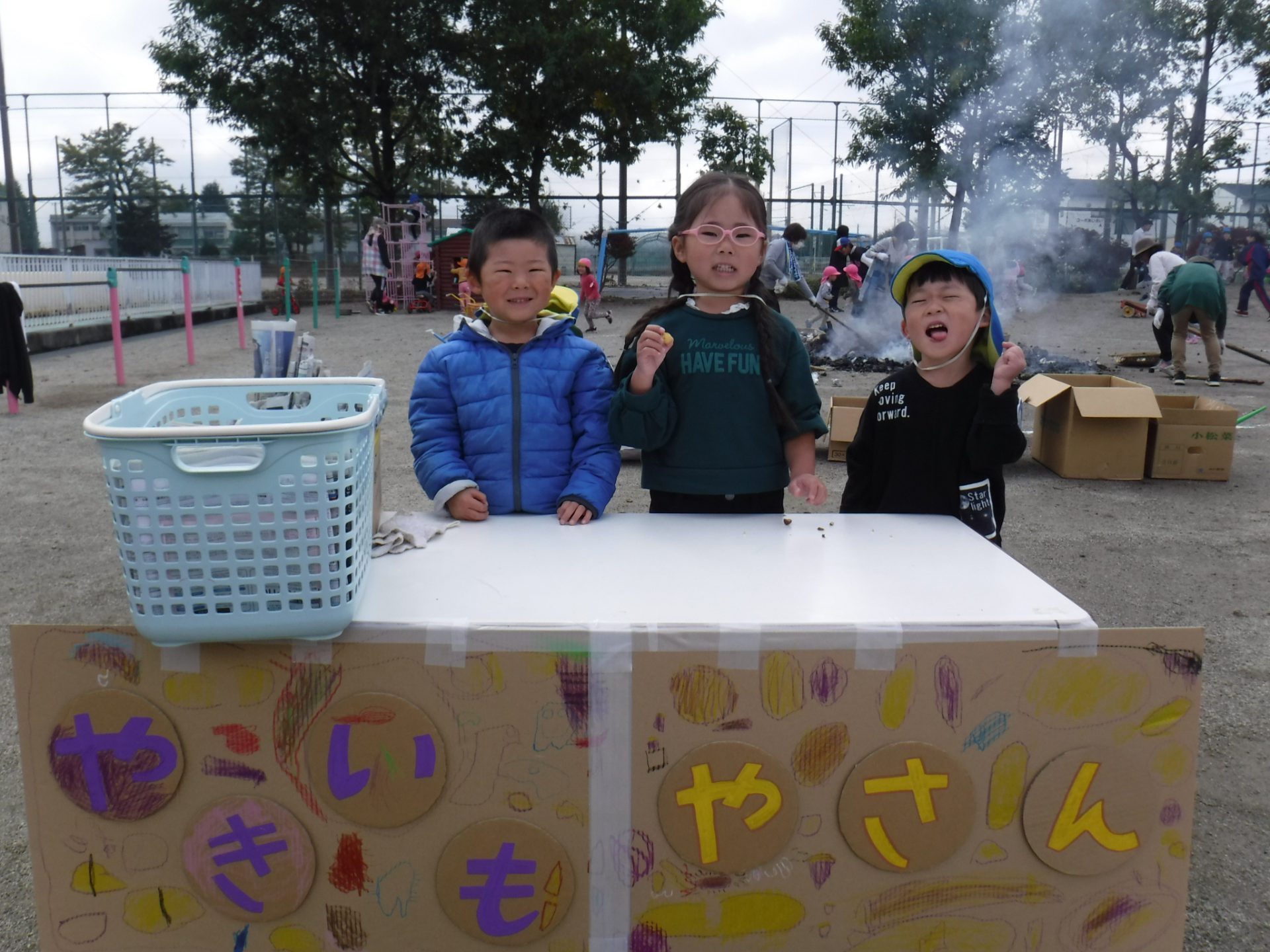 掘ってきたさつまいもはどうやって食べる?とみんなで話し合って、「焼いも屋さんを開こう!」と決まりました。