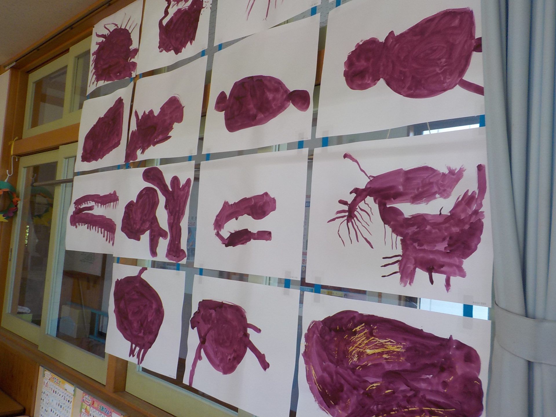掘ってきたおいもを見て、絵を描きました。