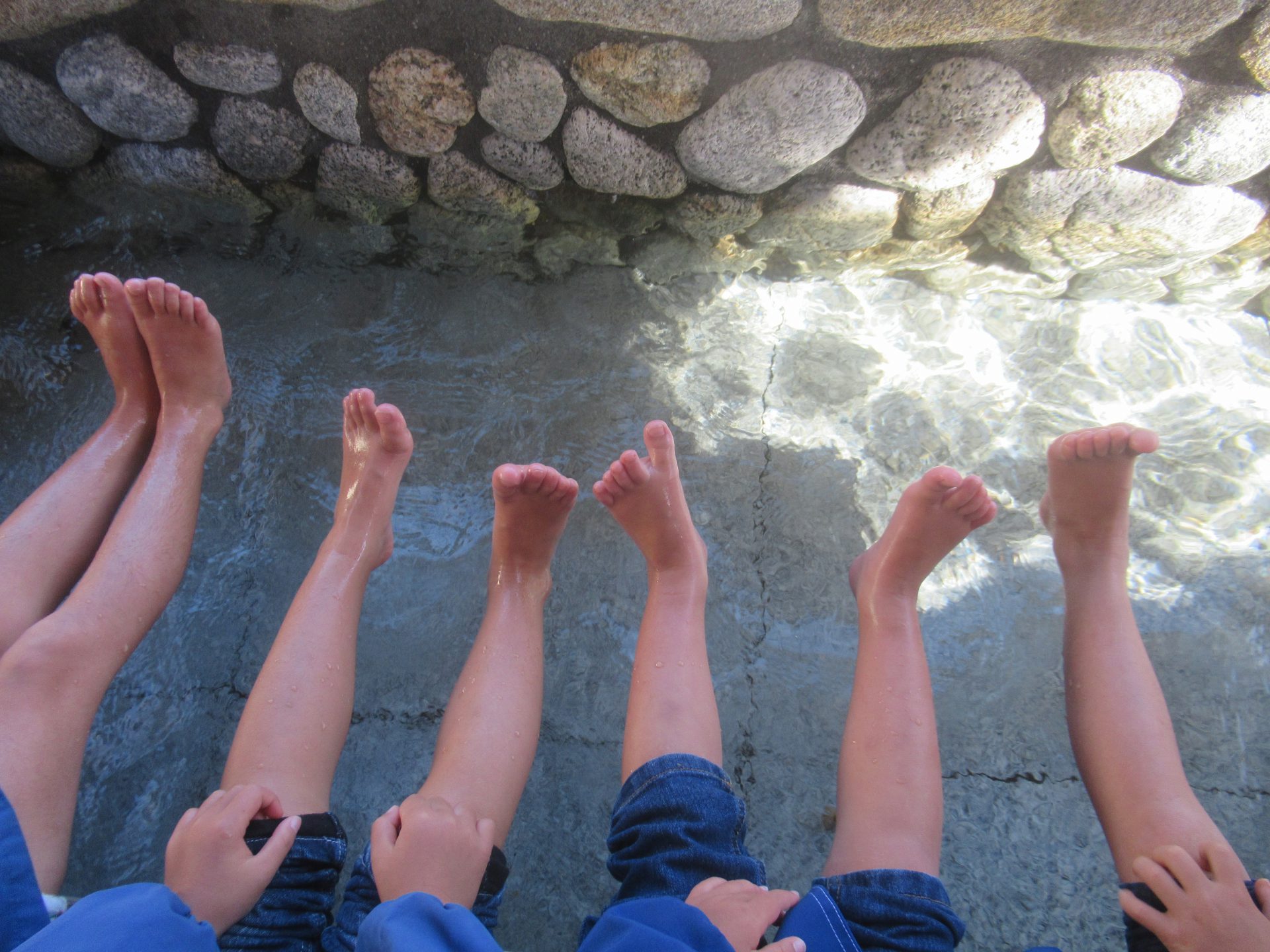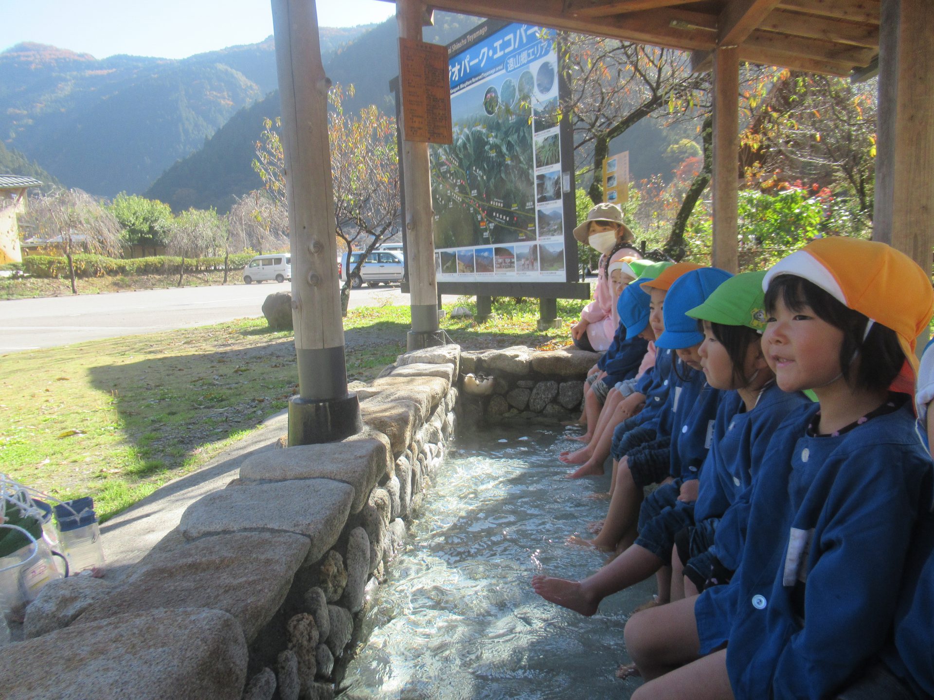 「みんな、こうやってきれいな紅葉を見て足湯に入れるって