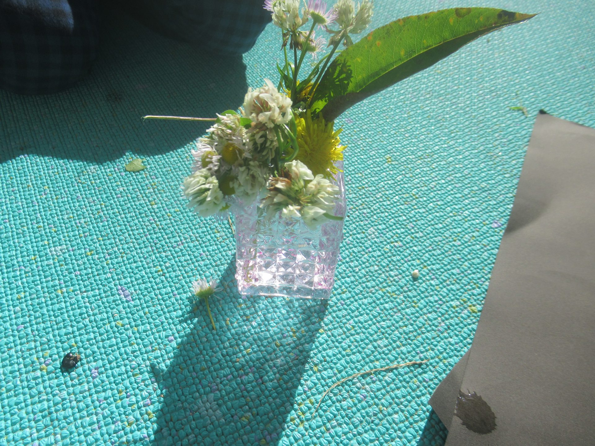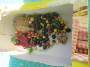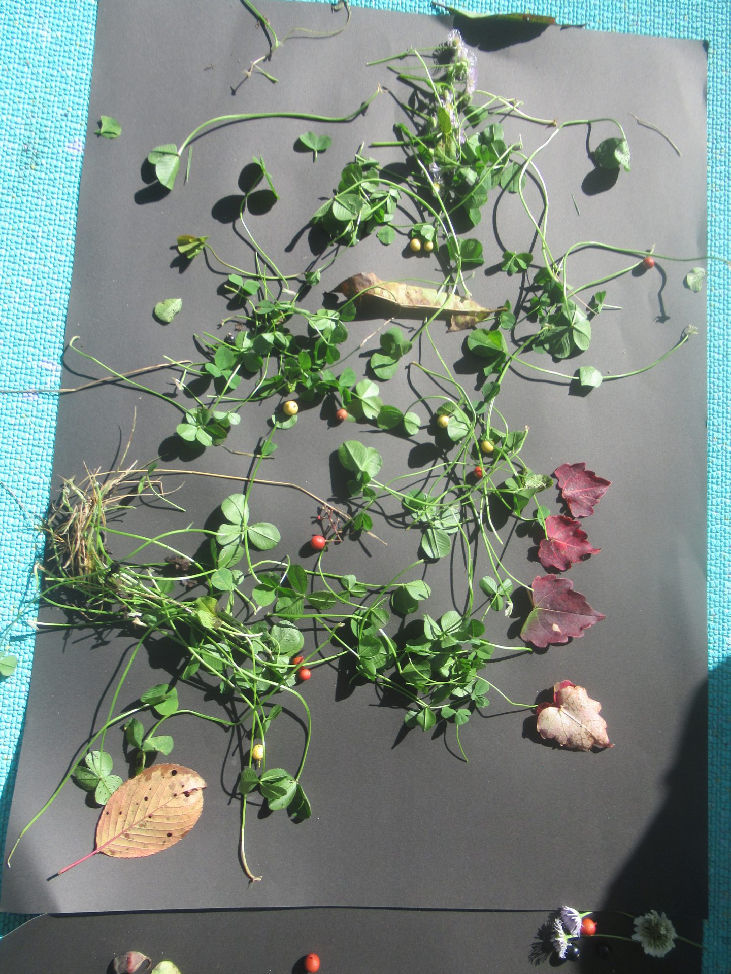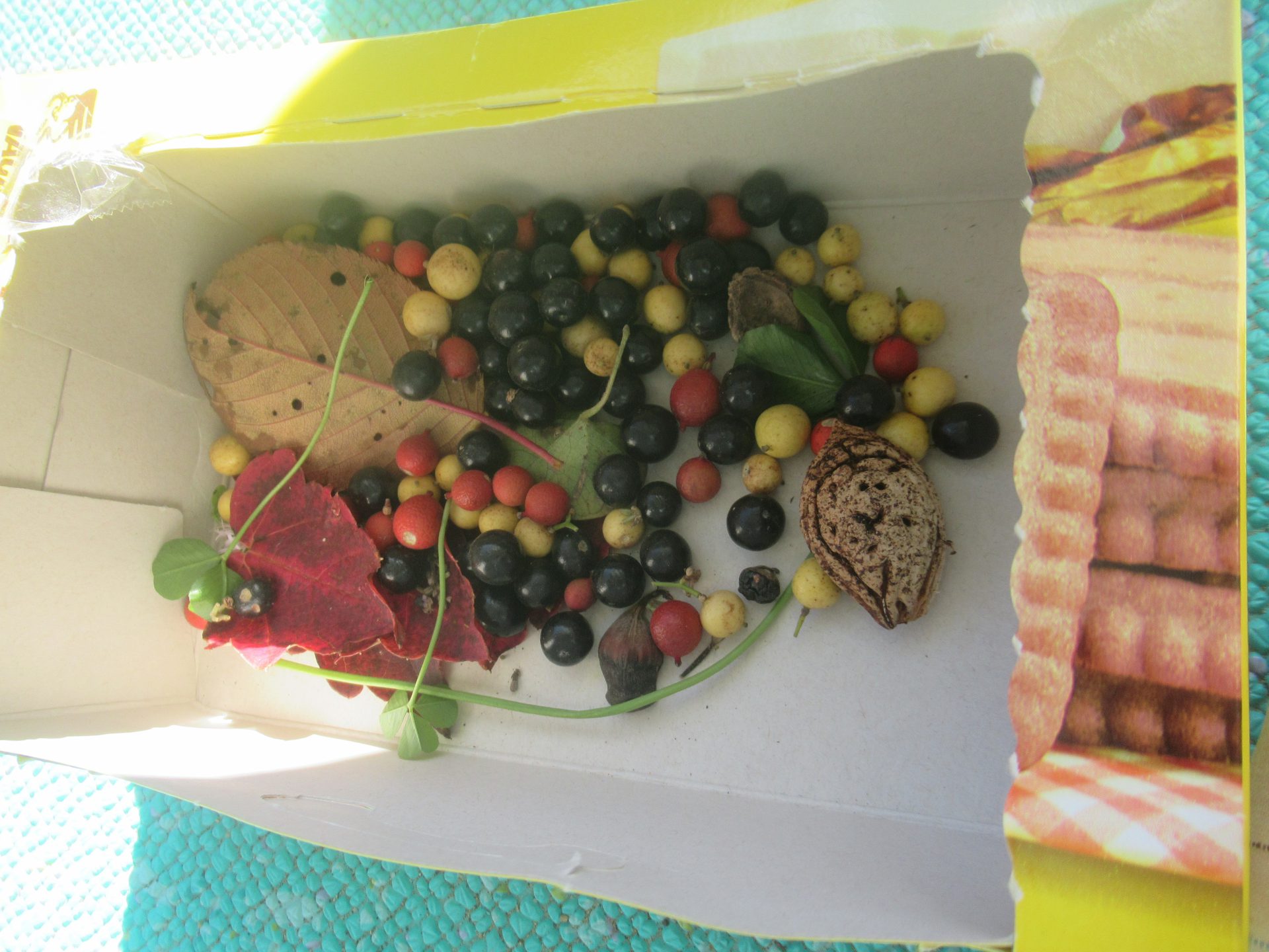 拾ってきた木の実をやきれいなはっぱを集めたら