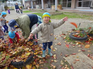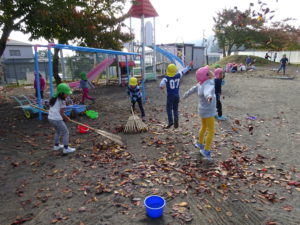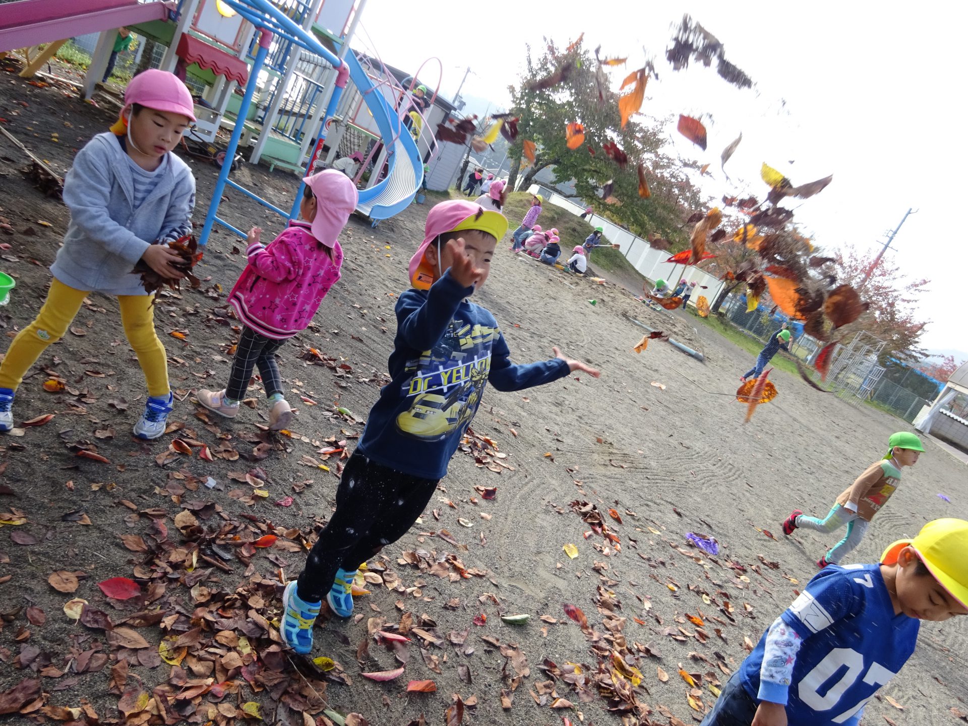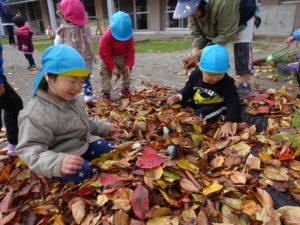 南部保育園では、毎年この時期になると園庭にたくさんの葉っぱが落ちてきます。