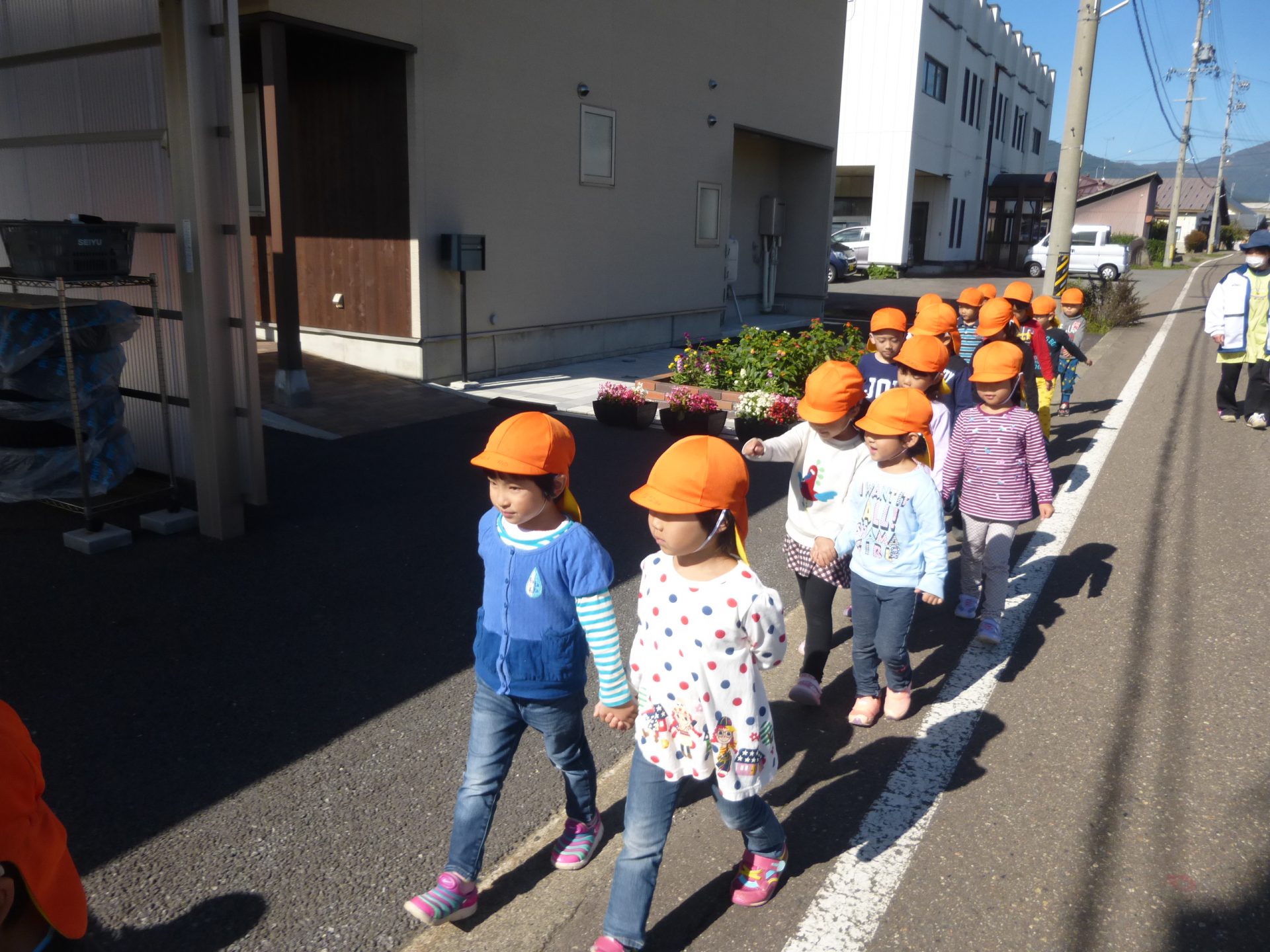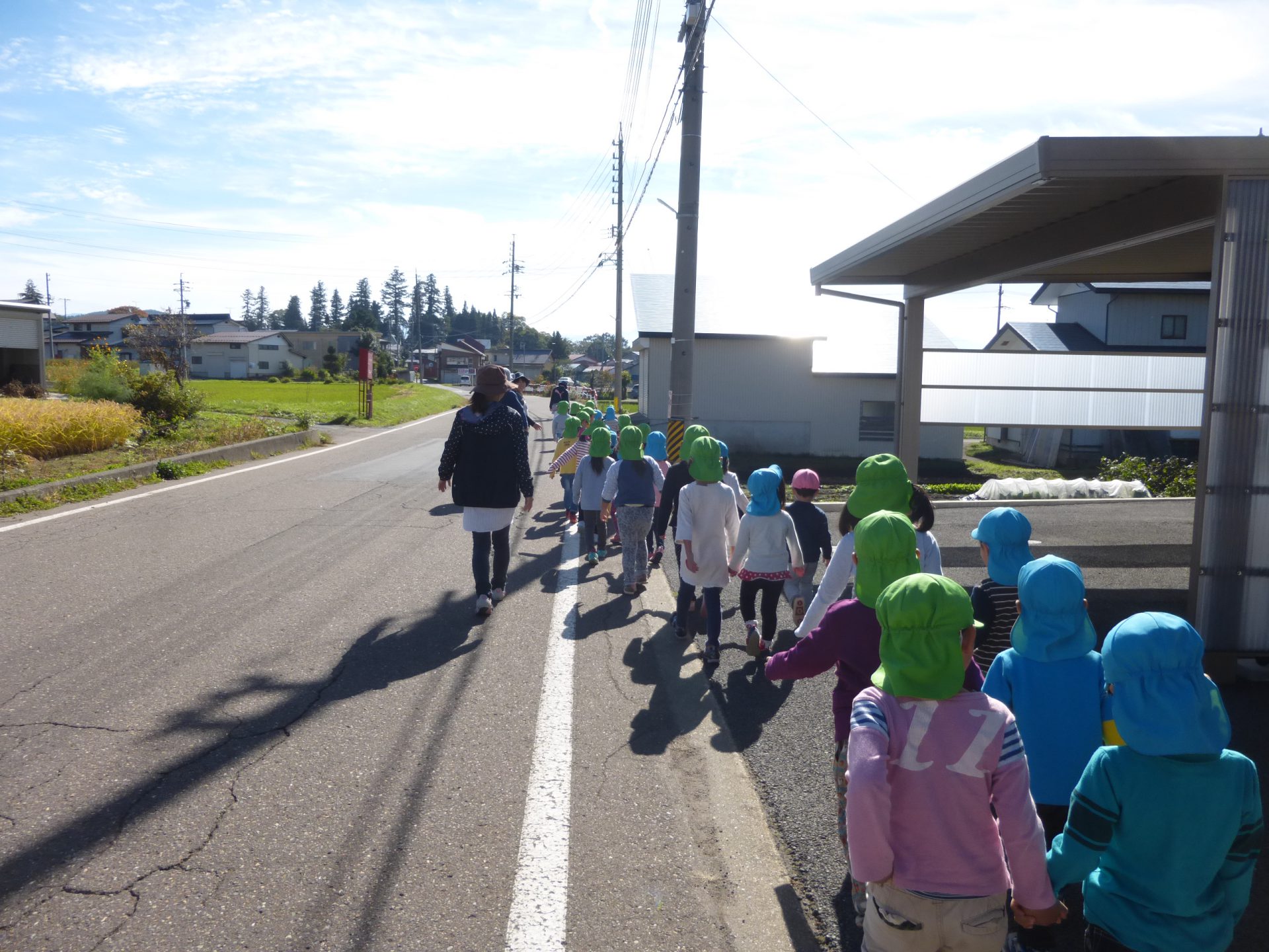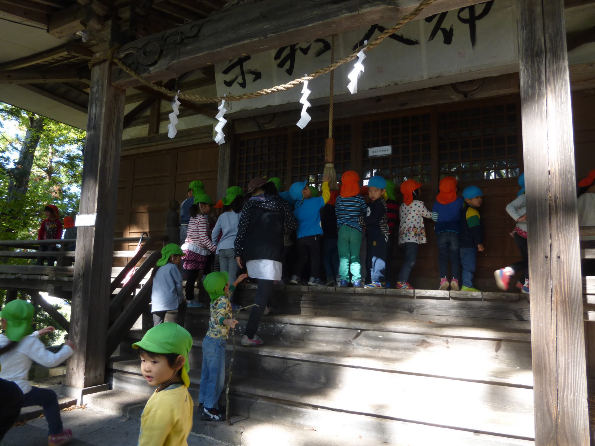 天気が良くお散歩日和な今日は、3・4・5歳で古間神社までお散歩に出掛けました。