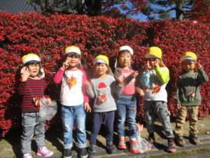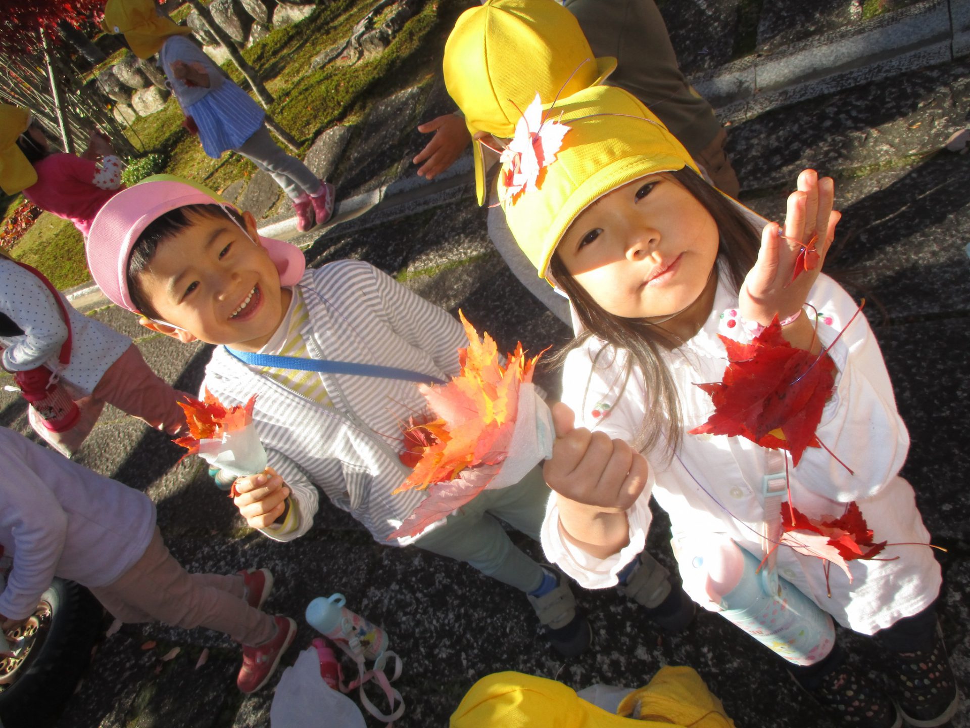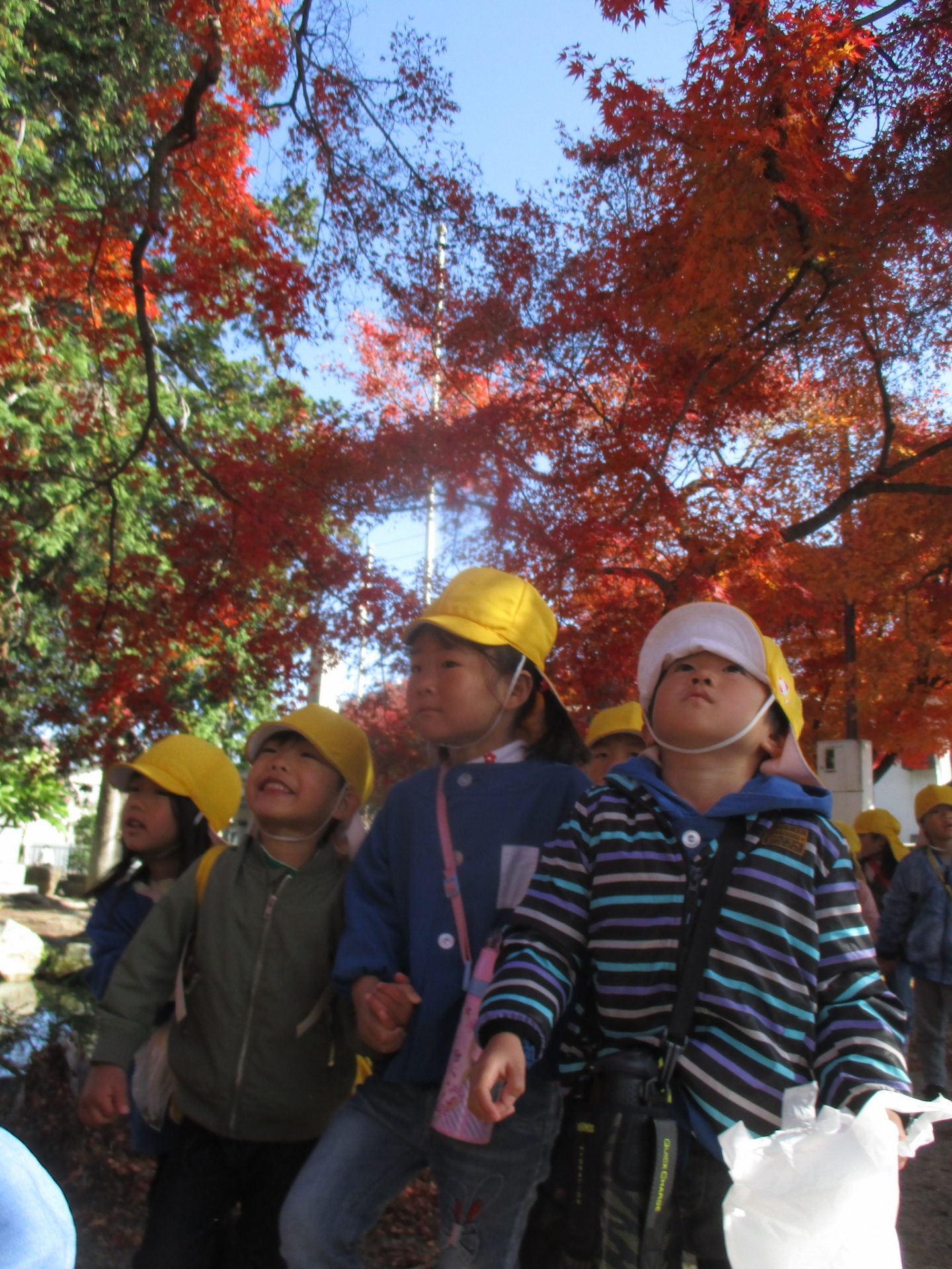 松尾地区には紅葉がきれいな場所がたくさんあるので、年中さんは毎日のように出かけて楽しんでいます!