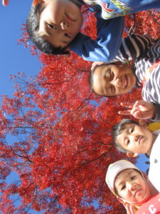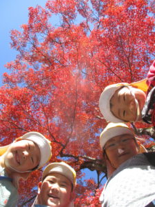 見上げると透き通るような青空子ども達の笑顔とともに紅葉が一層映えます!