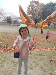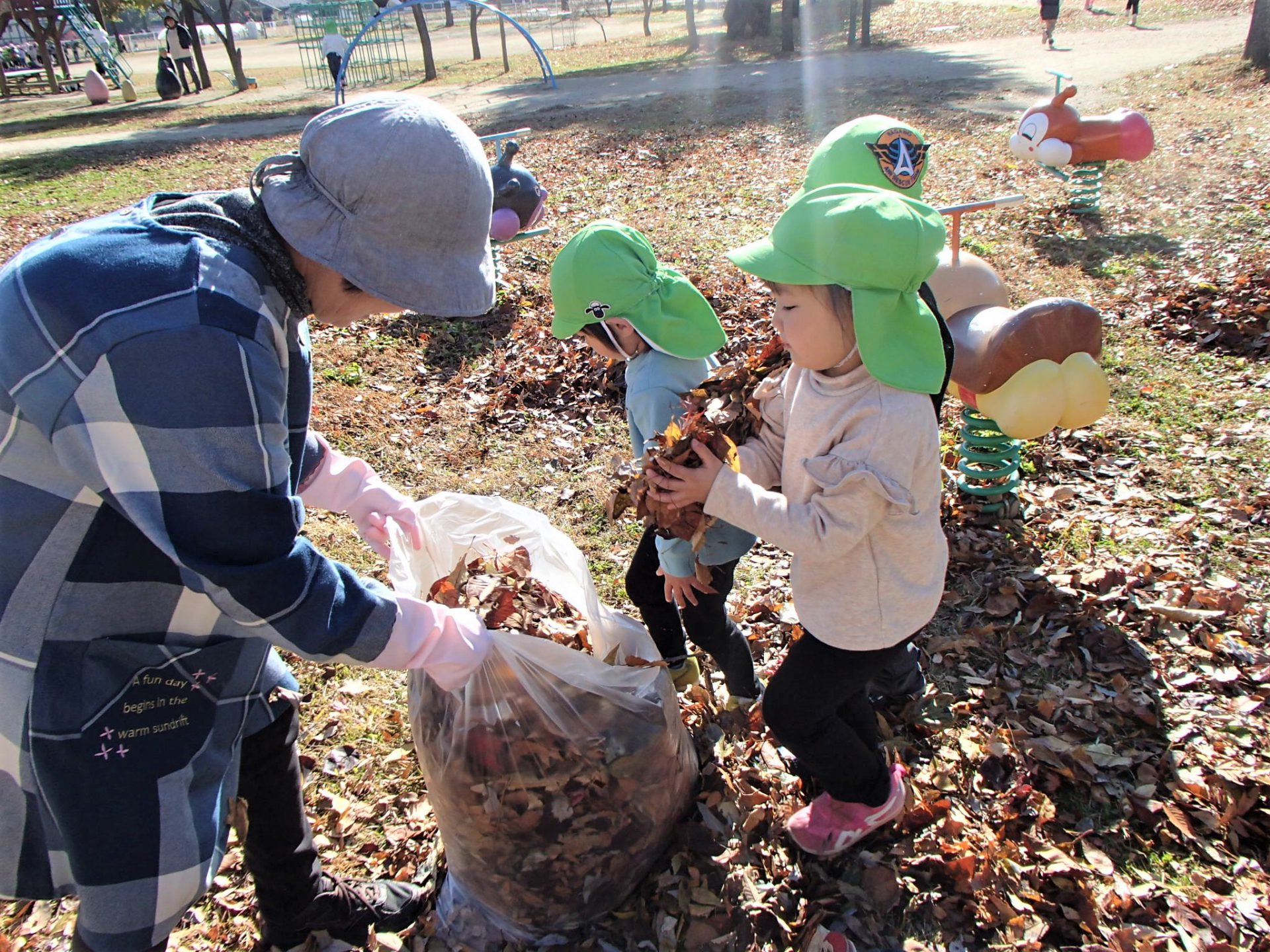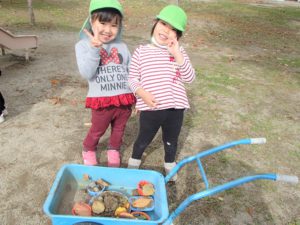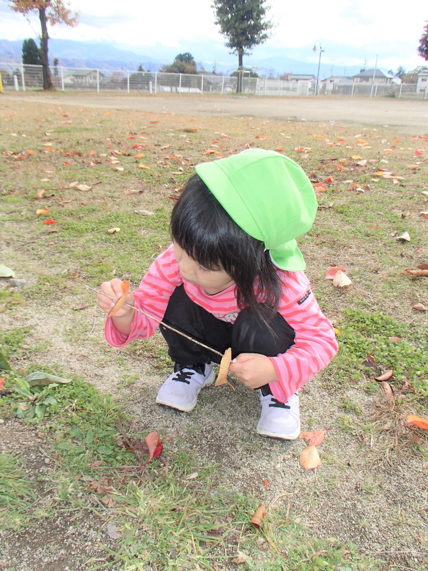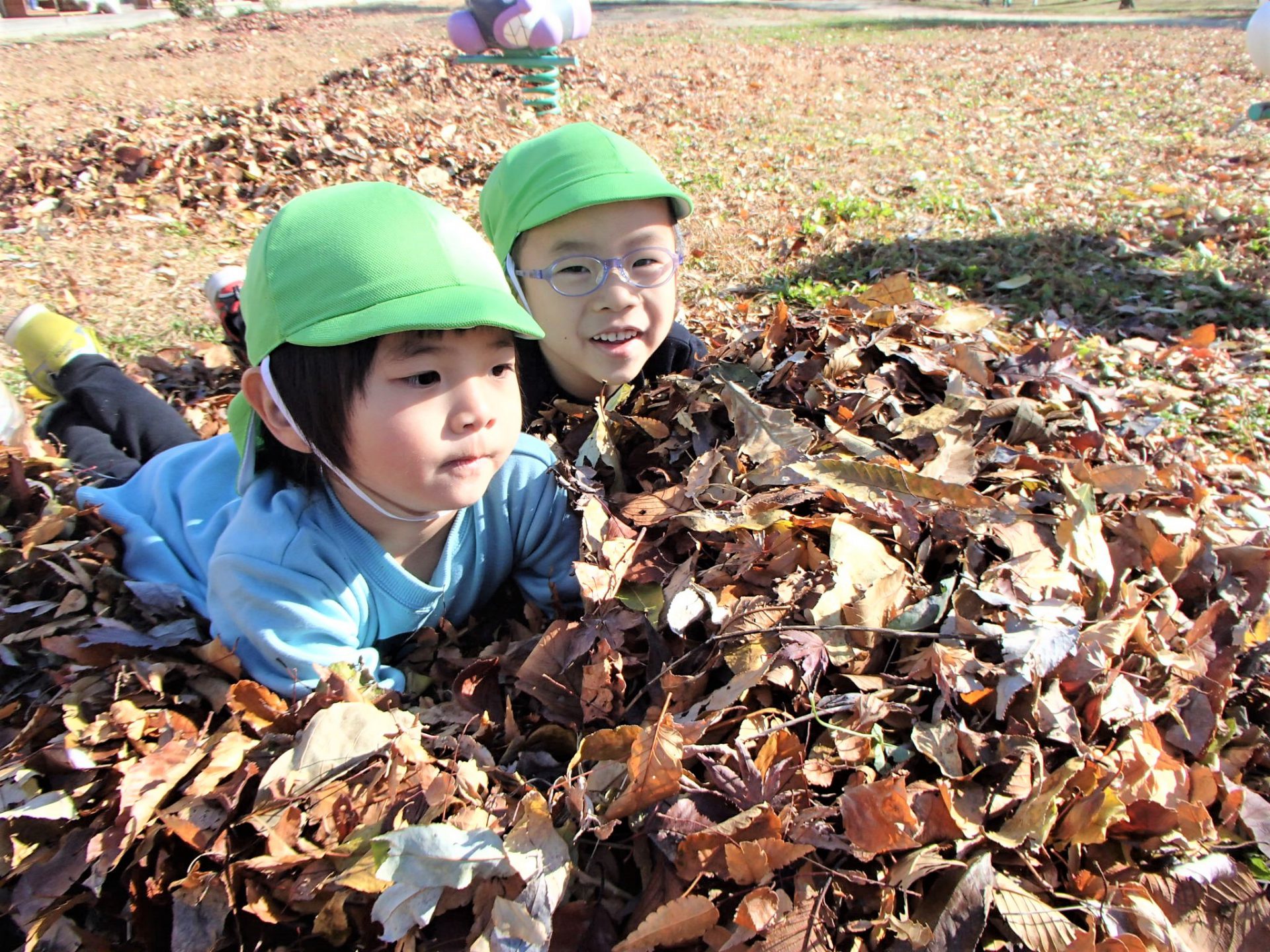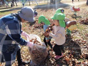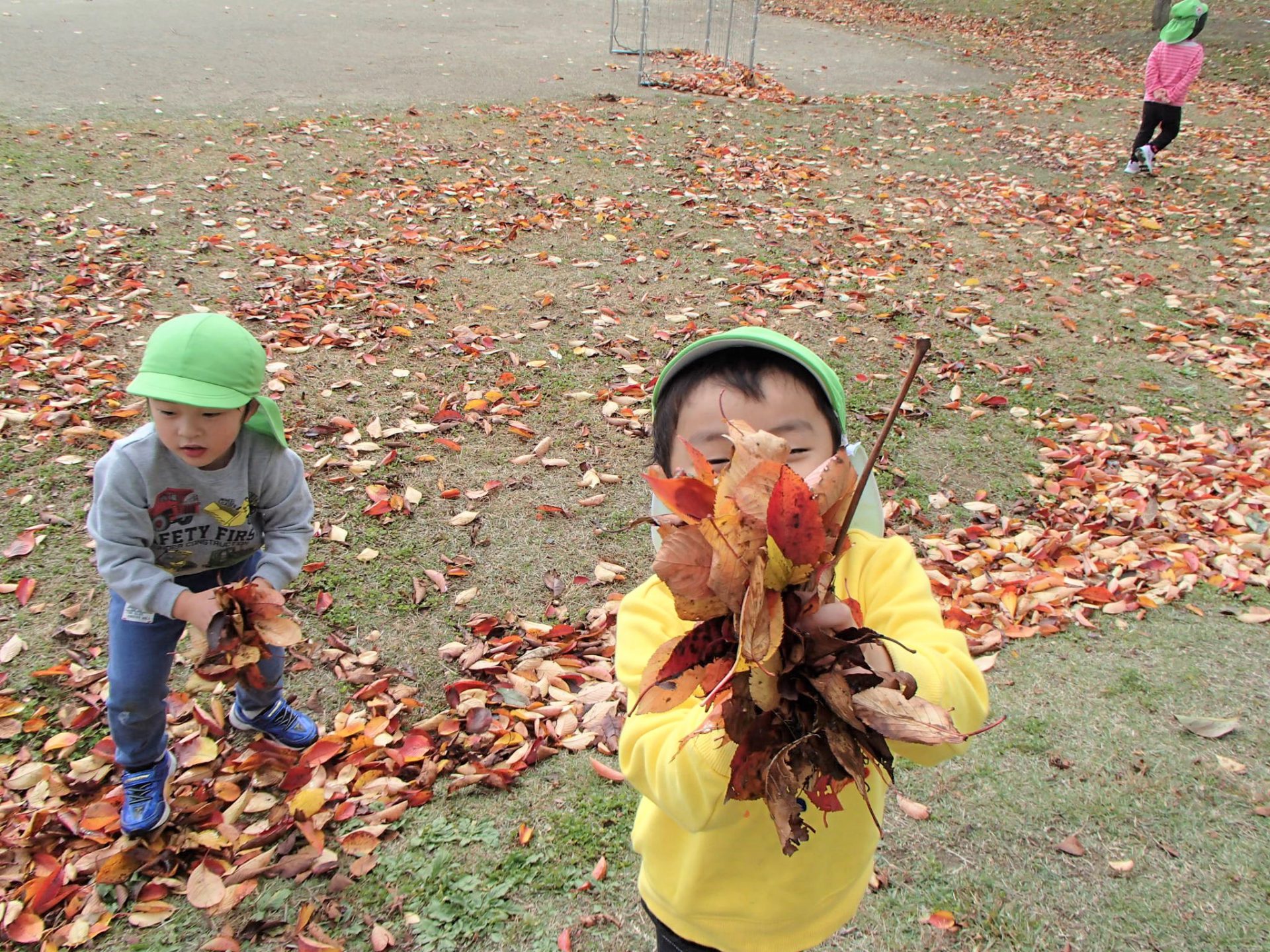 たくさん集めた葉っぱは、経験した焼きいも会ごっこにと『落ち葉』であそびを満喫。