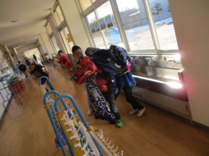 太鼓グループは実際に音を出してくれて、他の友達も耳を澄ませて聞いていました。「ほんとだ!ちょっと音が違う!」「こっちはドンドン!こっちはコンコンってする!」と聞いている子達も興味津々でどんどん前へ近付いていく子も(笑)