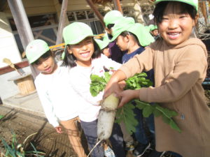 「先生、私のうち大根とったよ。保育園はまだ?」
