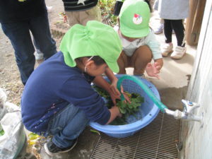後日、給食の先生に大根の葉をふりかけにしてもらったり大根せんべいにして、みんなでいただきました。