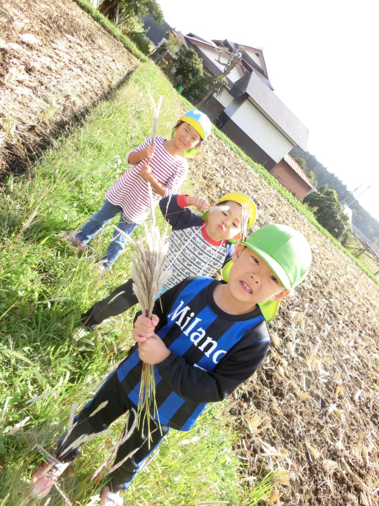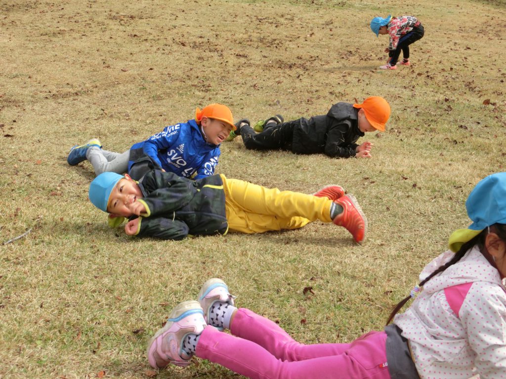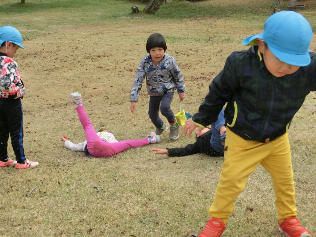 豊かな自然を身近に感じて生活している子ども達からはいろいろな遊びが生まれてきます。探検に出掛ける散歩では、安全か、おもしろそうか、などの基準から自分で選択し進んでいく道を決めていきます。「こっちでいいかな?どう思う?」と友達に相談したり、前回の散歩を思い出したり。今までの経験を元に判断する経験は、考える力を養っているなと思います。自由に散策し、興味が沸いたところで立ち止まり観察することで、「前はこんなところにバカ(服にくっつく草です)なかったのにこんなにいっぱい生えてる!」などちいさな気付きが増えたように思います。そこからやってみたい気持ちが生まれ、試行錯誤が始まります。どうして?なんで?と思う気持ちが生まれる場面を大切に過ごしていきたいと思います。