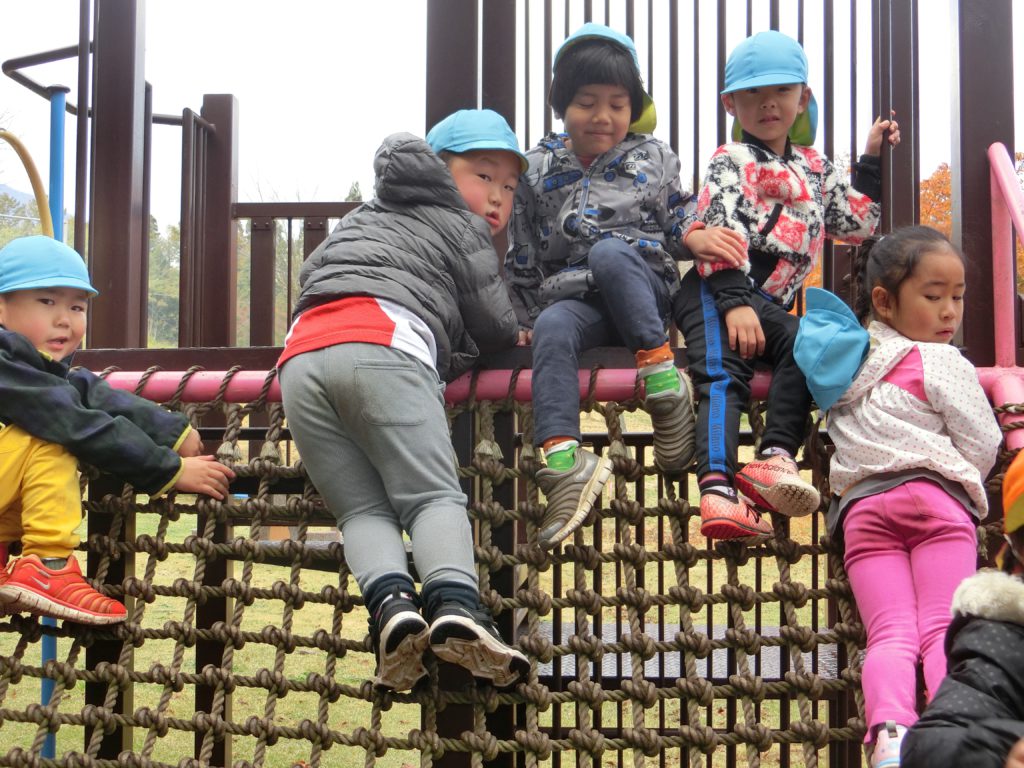 一回目に行ったときには怖くて出来なかった遊具も二回目には出来るようになっていました。「やってみたらできた!」「先生!もっとゆらしていいよ!」