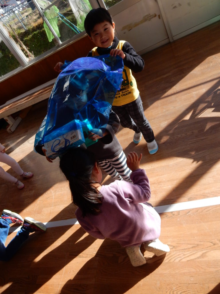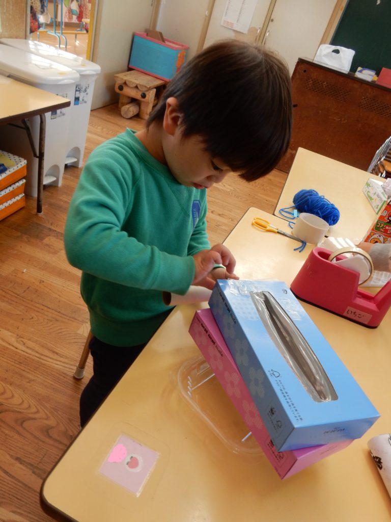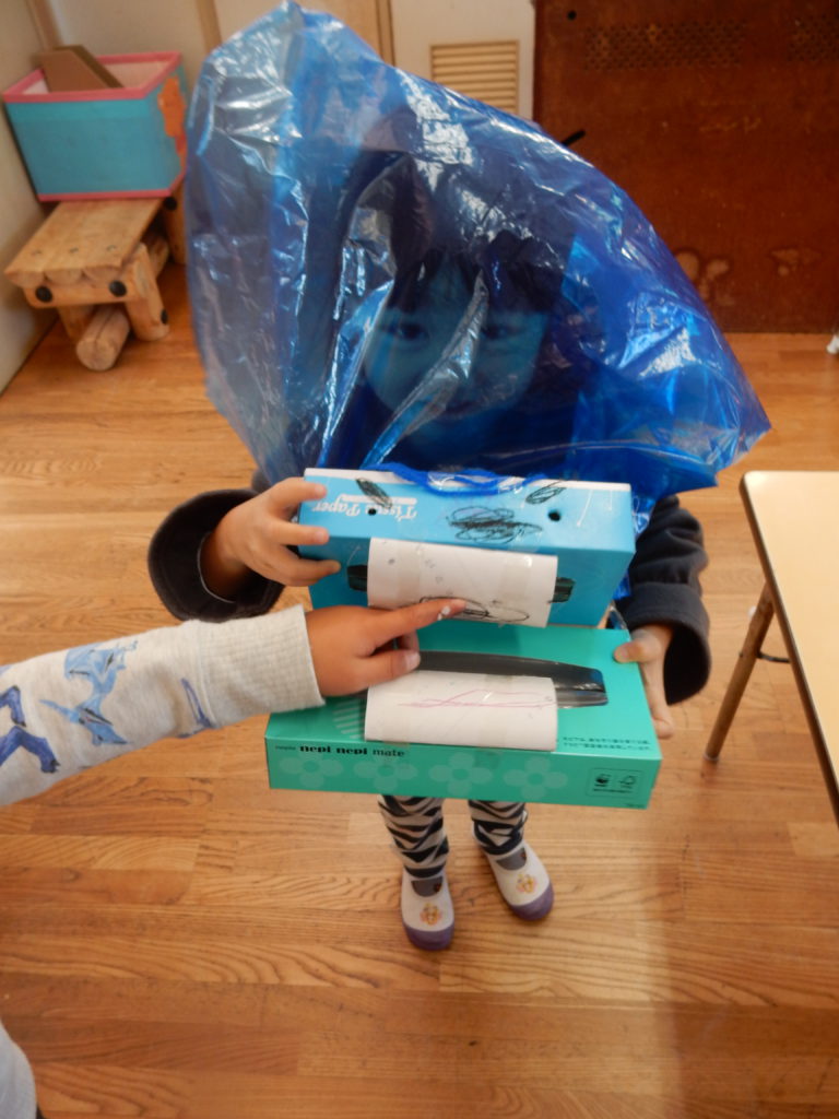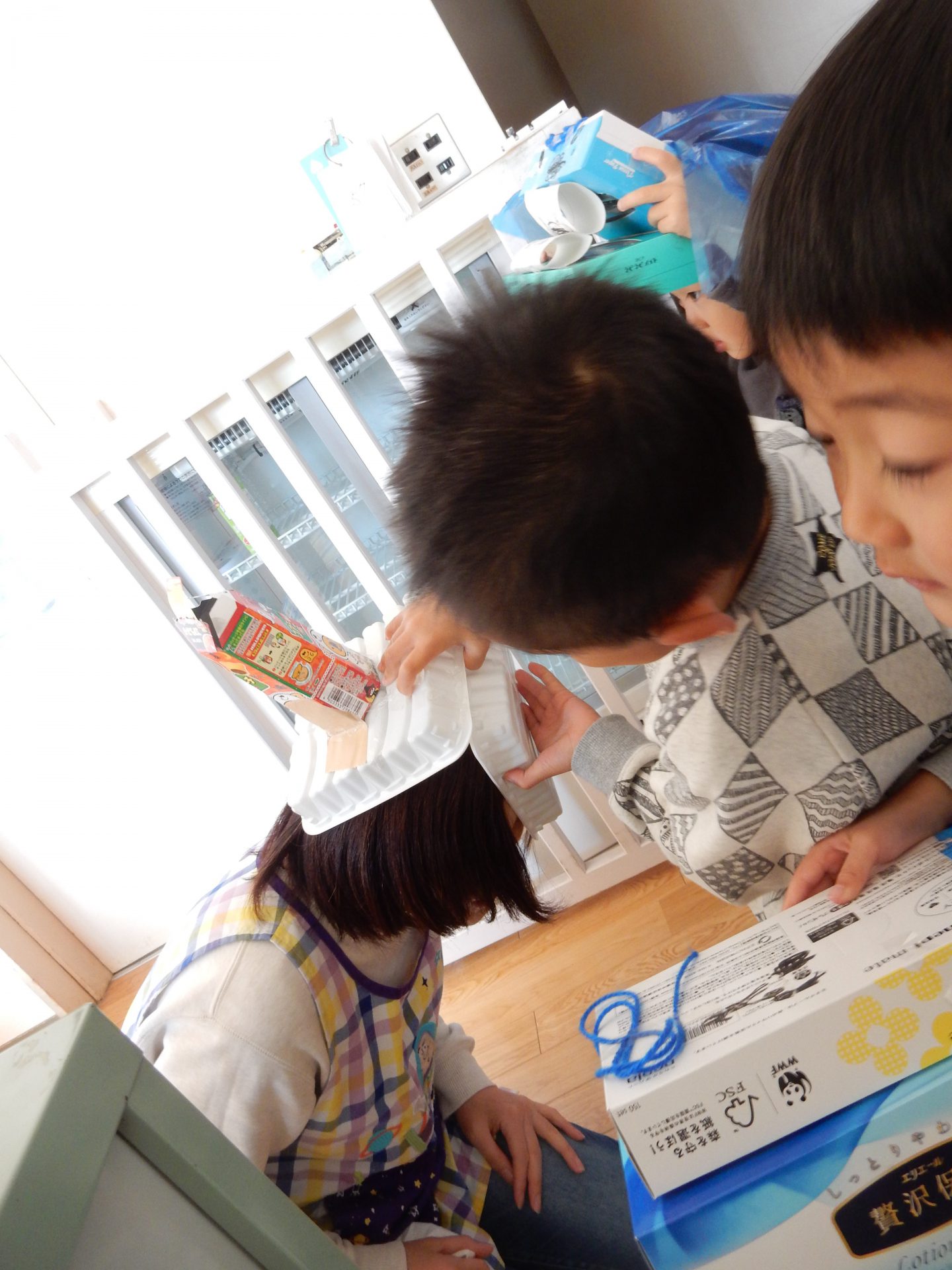 ティッシュ箱を抱えて帰ってきた子どもたち。どうするのか見ていると…