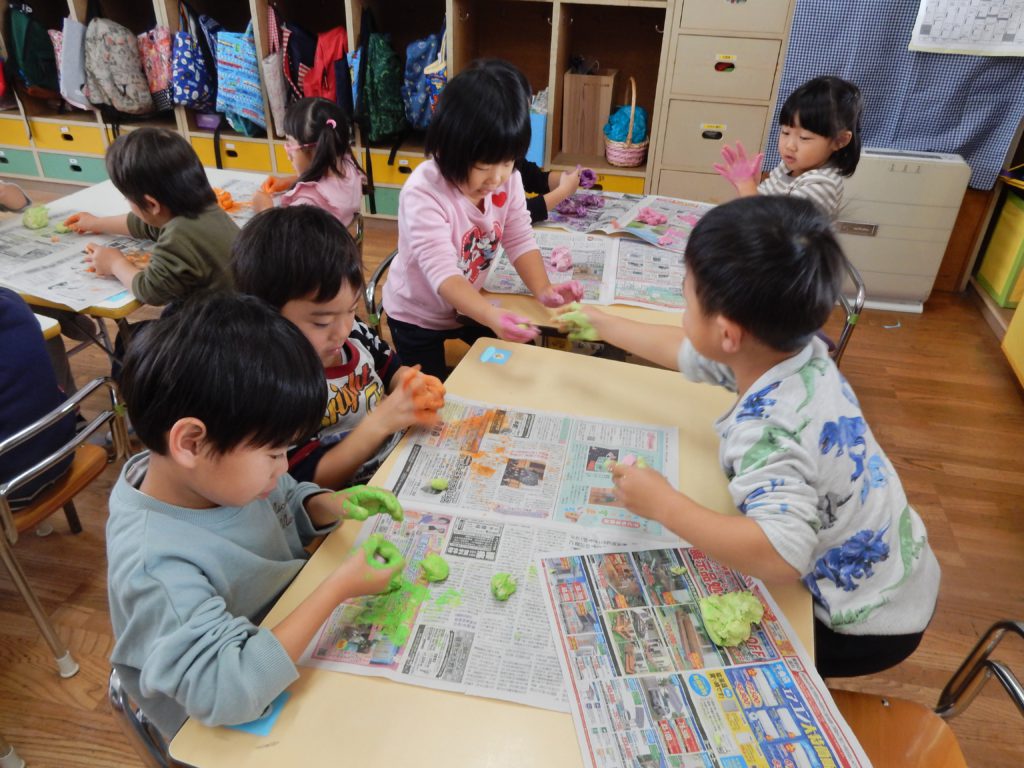 また別の日は色付き紙粘土で遊ぶ年中さんがいました。