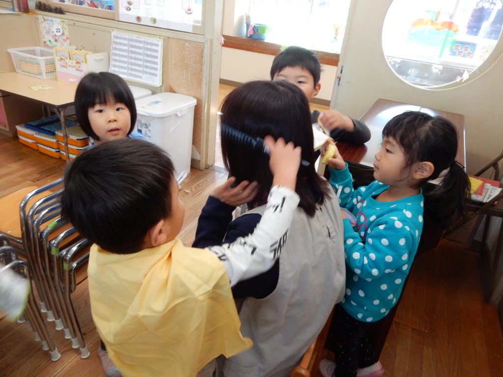そして完成すると、年中年長さんのところへ行って、さっき見せてもらったのと同じように頭をパクッとしてあげます。