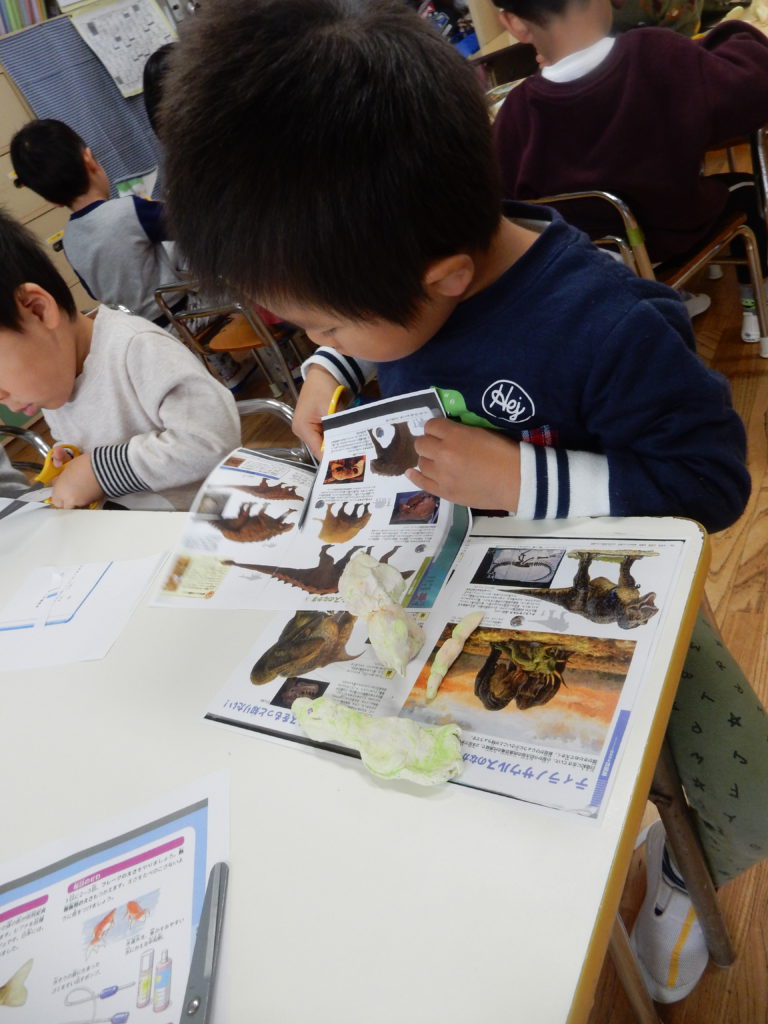 そして翌日、粘土が固くなっていることにびっくり‼︎作ったものを広告や絵本で探し、比べてみました。