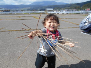 枯草を見つけてほうきの様に使ったり、持ち歩いたりして楽しそう!