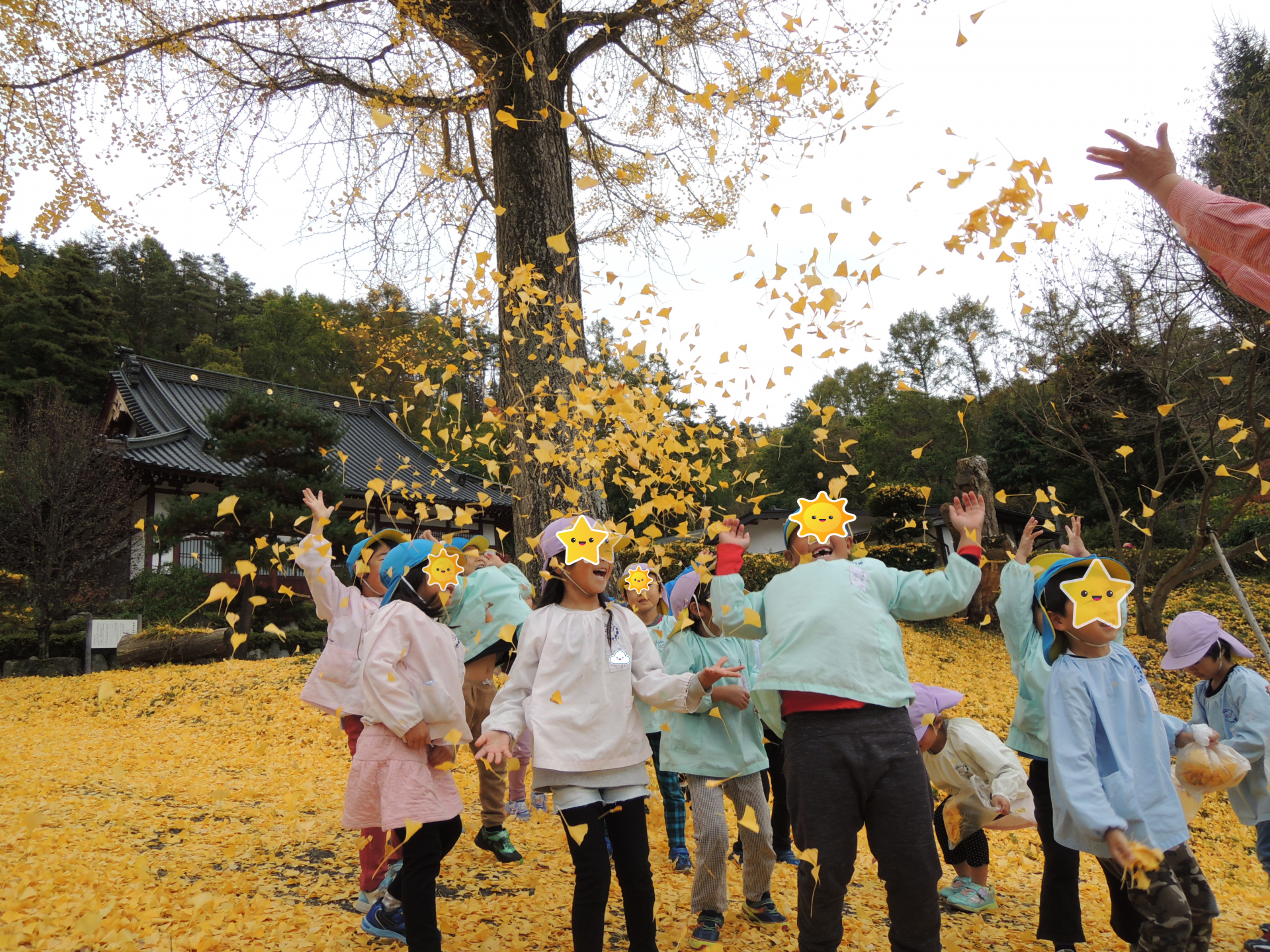 保育園から2キロほど離れた山の上に長福寺というお寺があります。園庭から見える大きなイチョウの木。