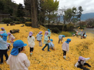 ・一気に散ったイチョウの木。黄色い絨毯の上ではしゃいだ子どもたち。年に一度しか見ることができない景色をしっかりと目に焼き付けて、良い思い出として残っていきますように。