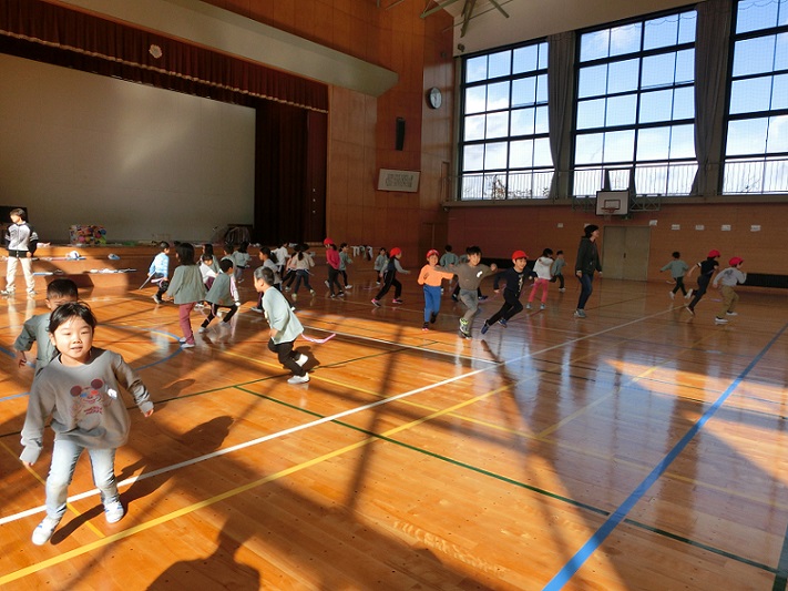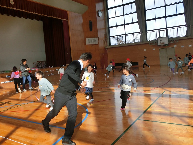 校長先生も飛び入り参加!子ども達も一生懸命に追いかけます。