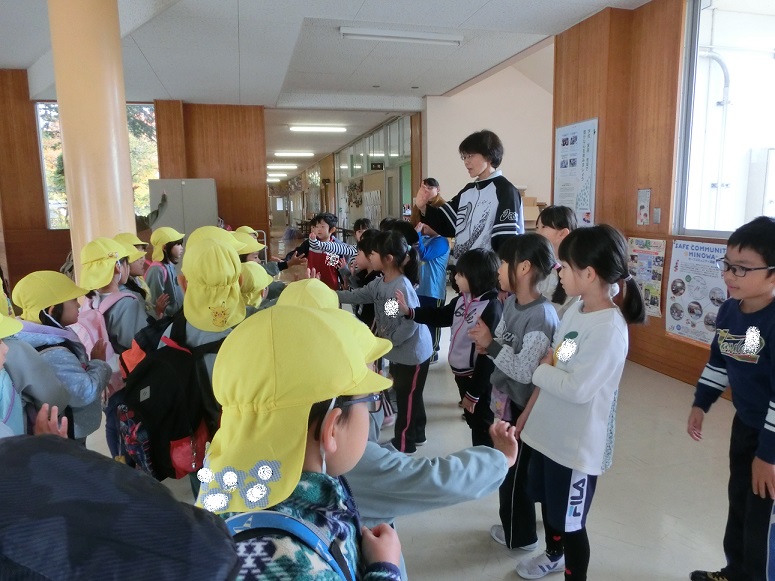 玄関までお見送りに来てくれました。1、2年生の皆さん、本当にありがとうございました。