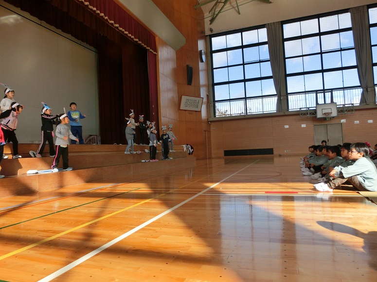 1年生が「おむすびころりん」の劇を見せてくれました。