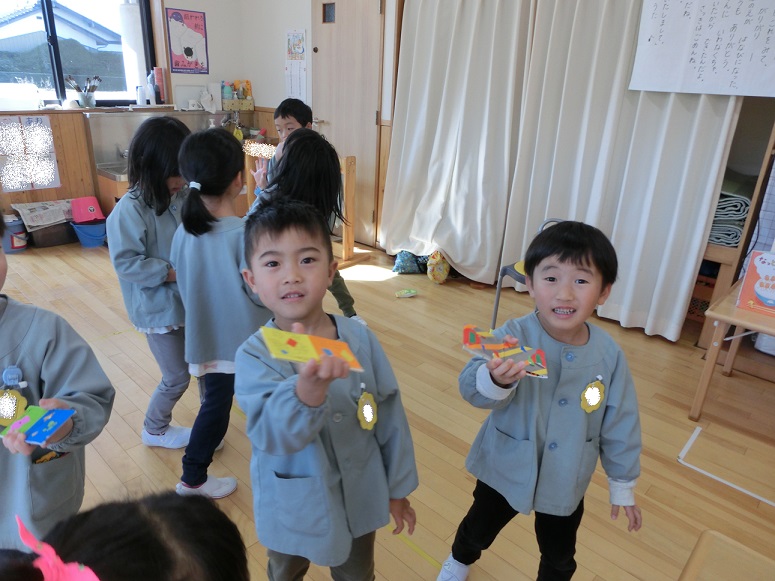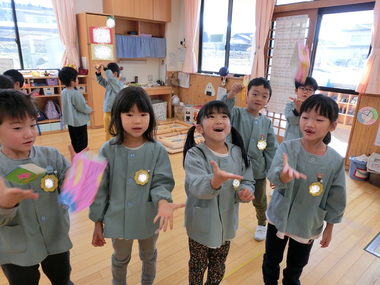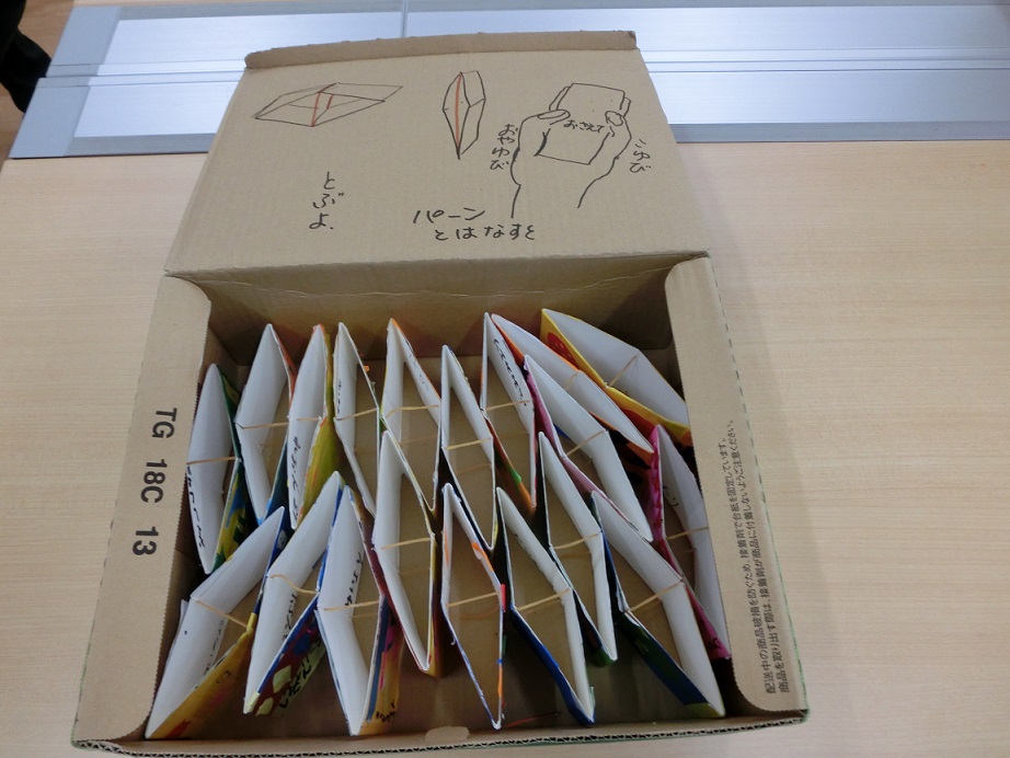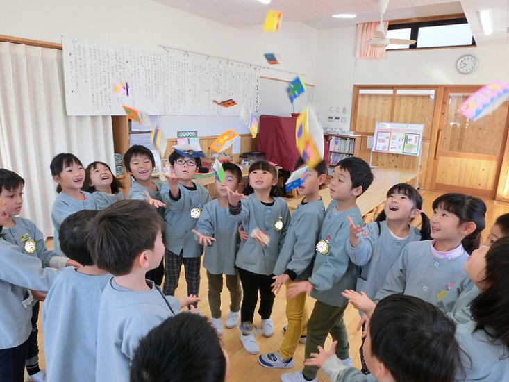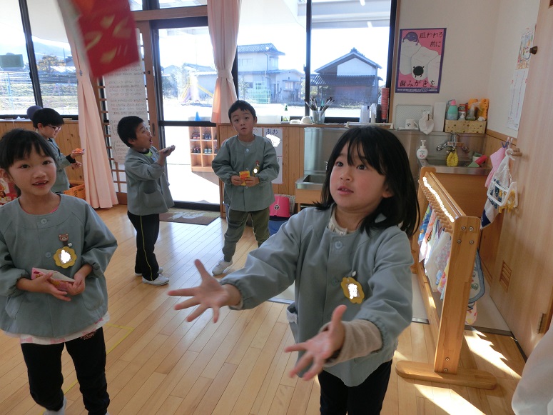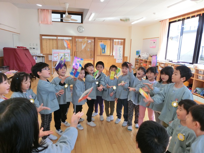 子ども達は大喜びで飛ばし合ったり、それぞれ違う柄を見せ合ったりして楽しんでいました。