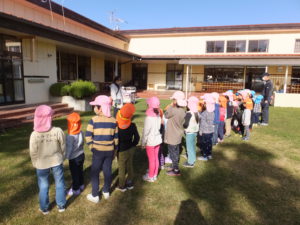 当日、皆で園庭に並んで「行ってきます!!」と意気揚々と出発した子どもたちです。