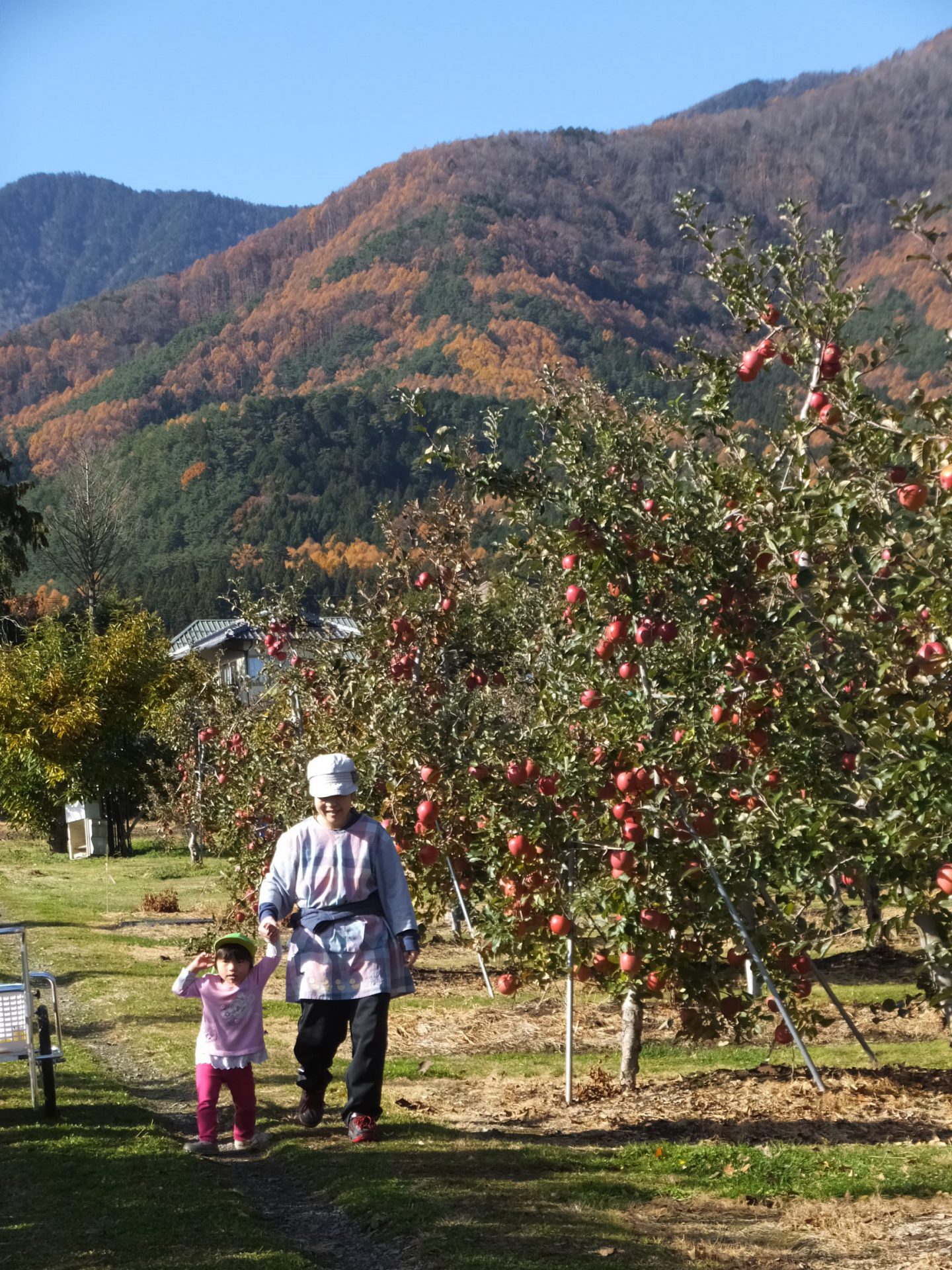 夏が来て、秋が過ぎ去ろうとしている11月中旬、近所に住む地域の方のご厚意で、りんご狩りをさせて頂けることになりました。