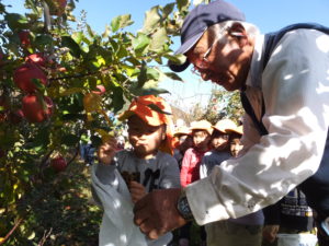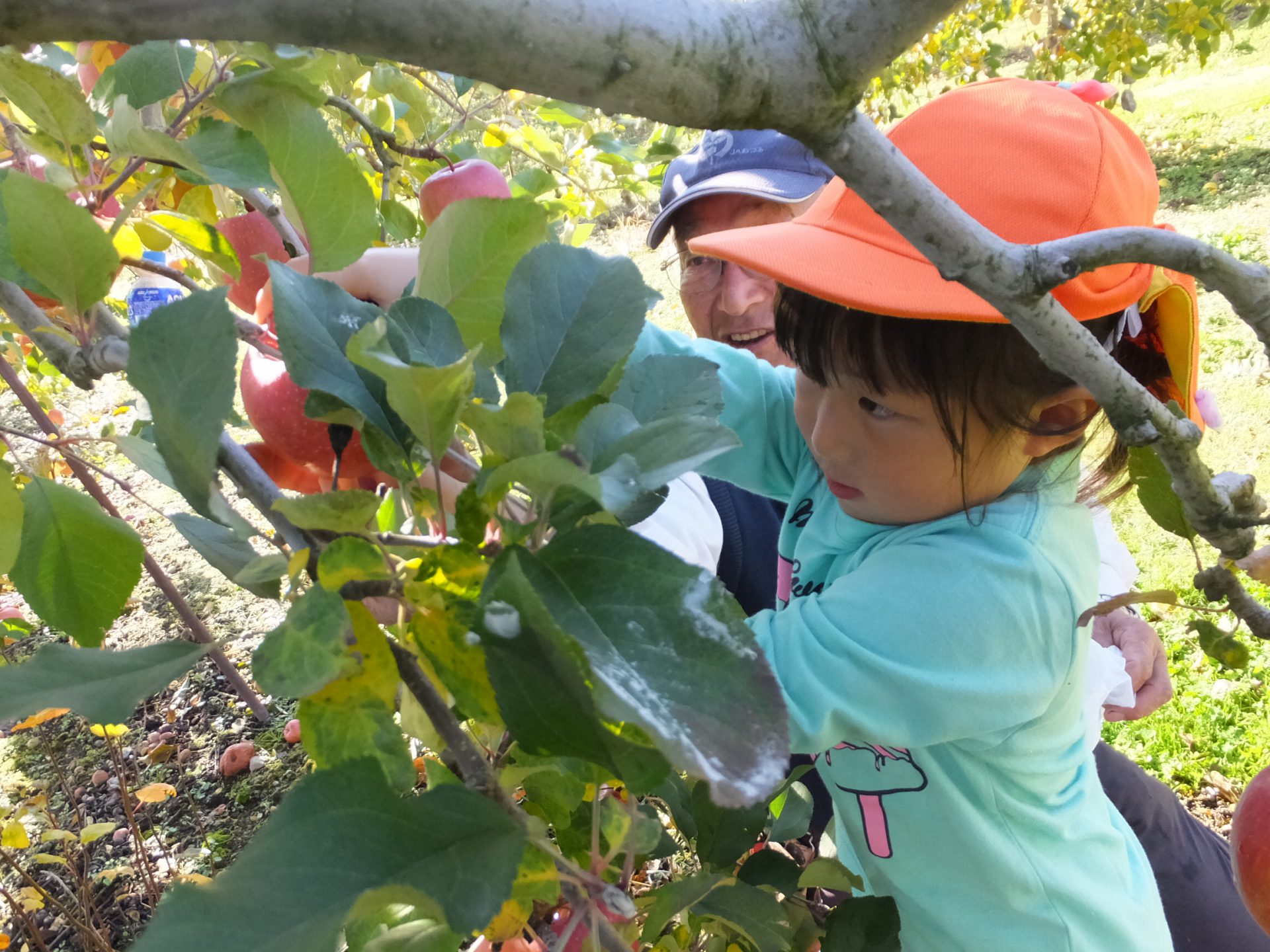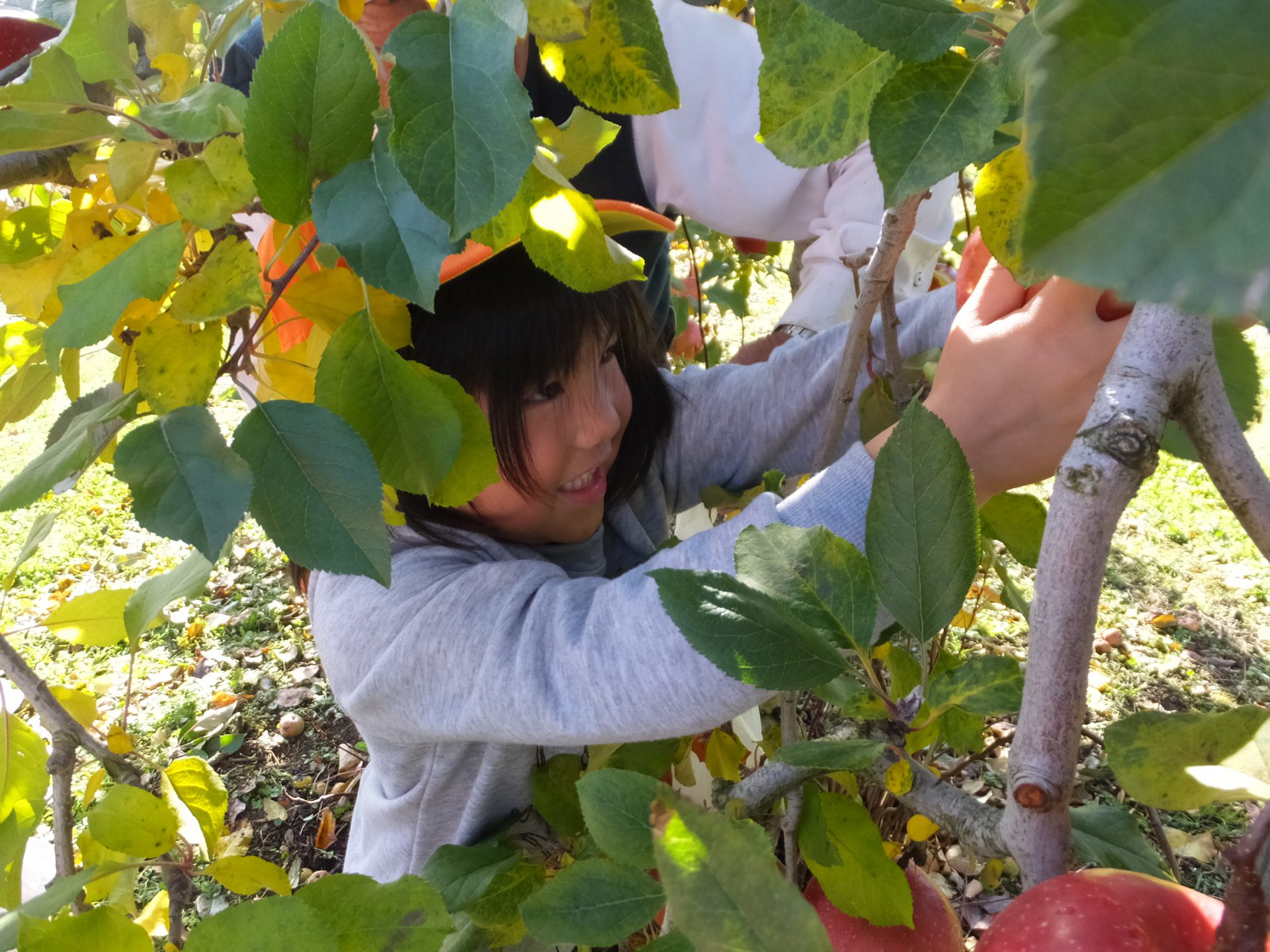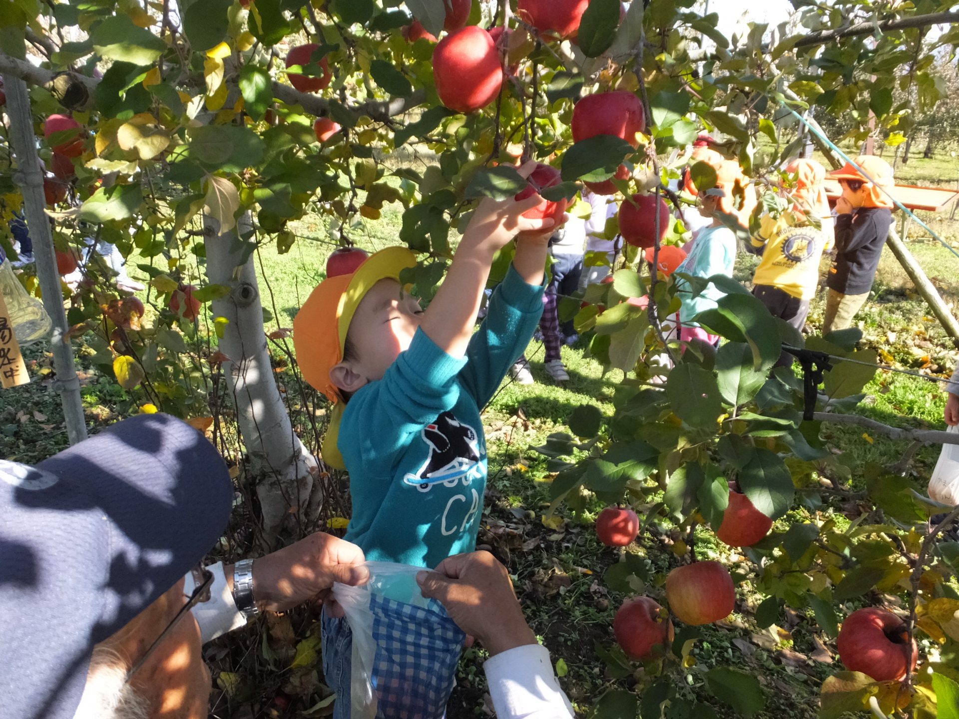 採れて嬉しそうにしている子どもたちを温かいまなざしで見守ってくれる地域の方に、不安な子も初めての子も安心してりんご狩りをしていました。