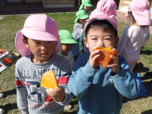 「柿みたいだなぁ」「おいしいかなぁ…」