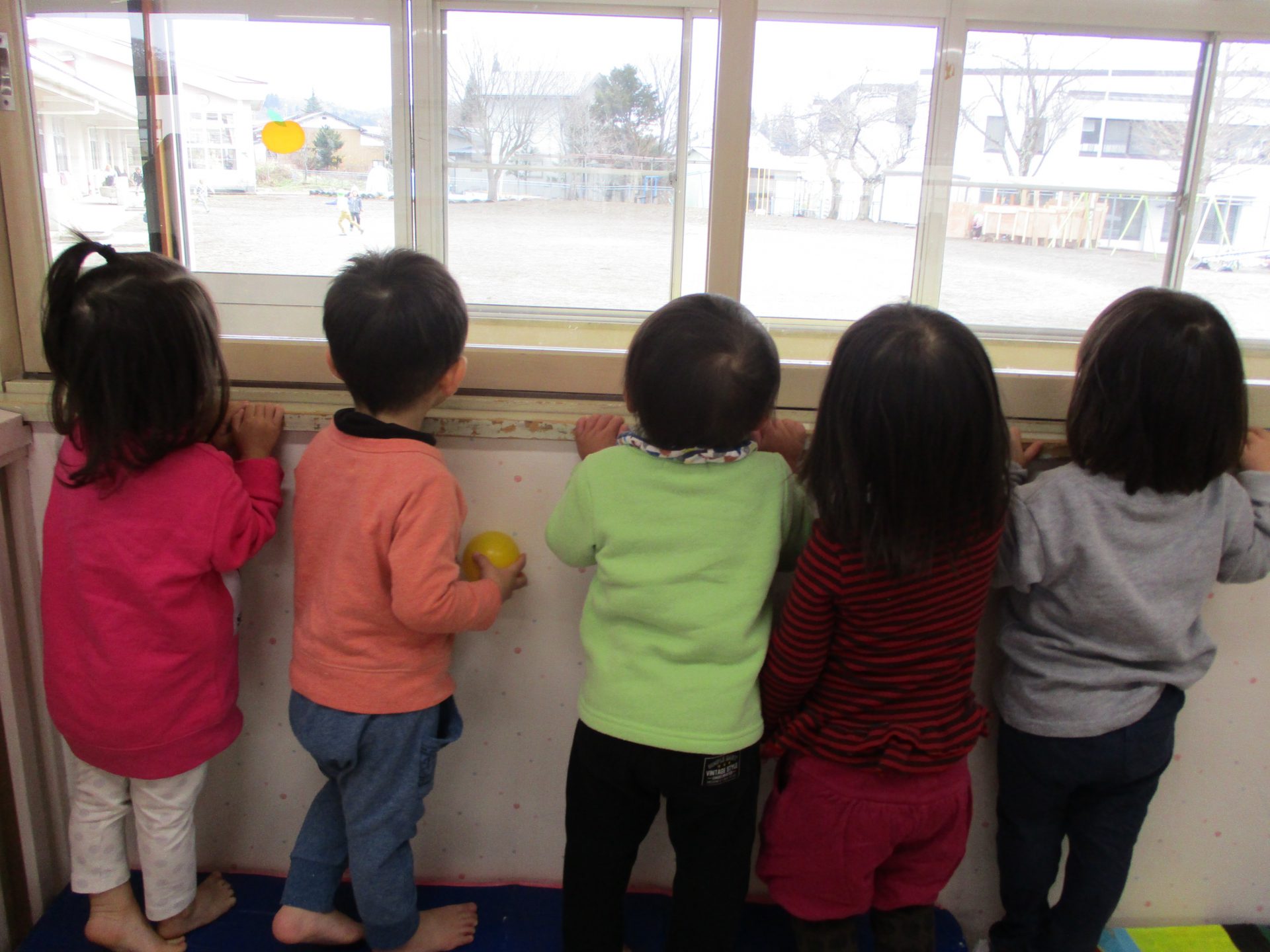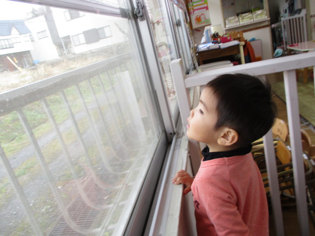 お部屋で遊んでいても、外の様子が気になるお友だち。
